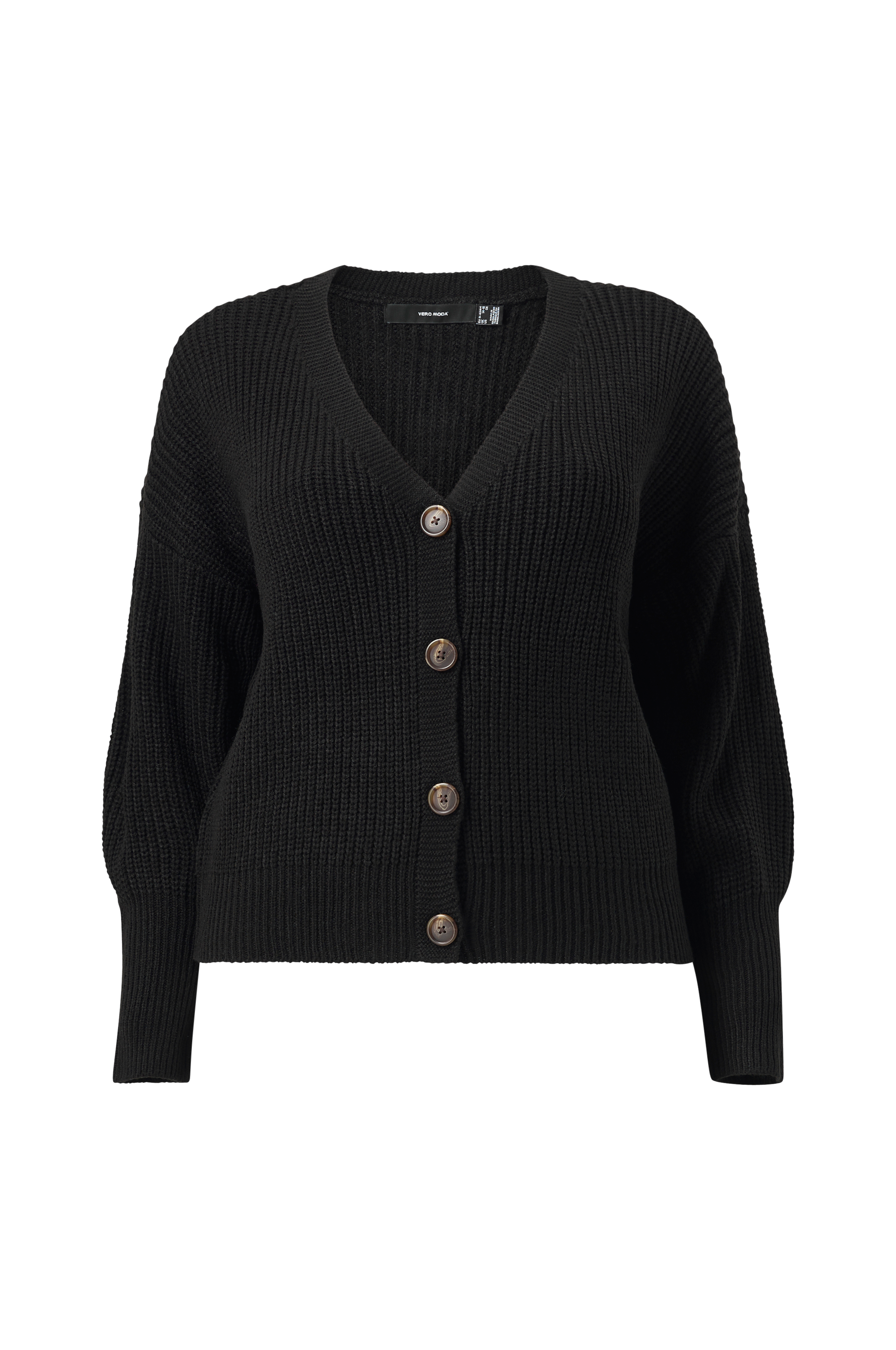 • Store størrelser• Ribstrikket model• V-formet halsudskæring• Knapper foran