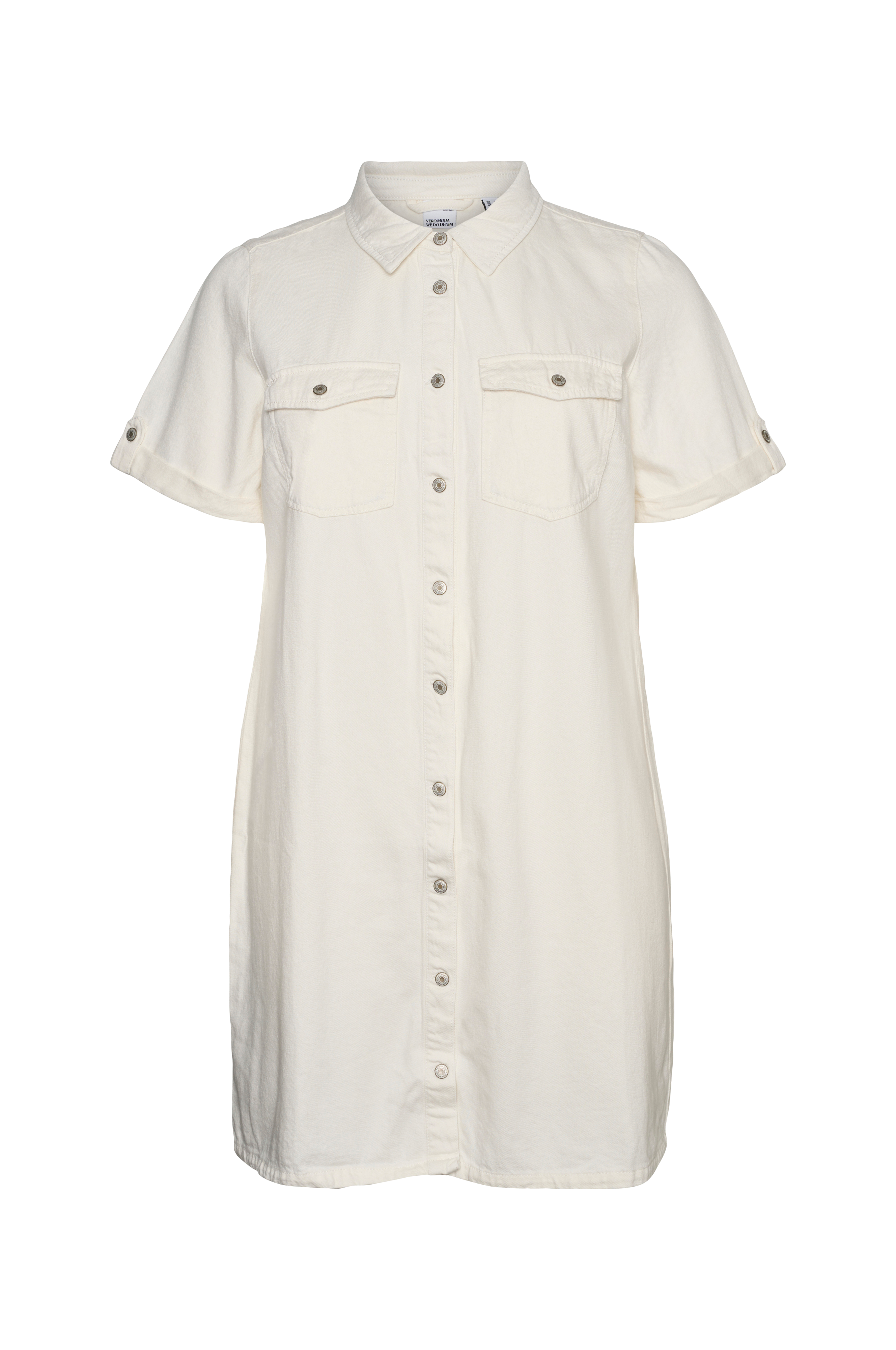 • Kjole i denim• Metalknapper hele vejen frem• To brystlommer med knapbare lommelåg• Korte ærmer med syede ærmeafslutninger• Længde: 92 cm i størrelse 44