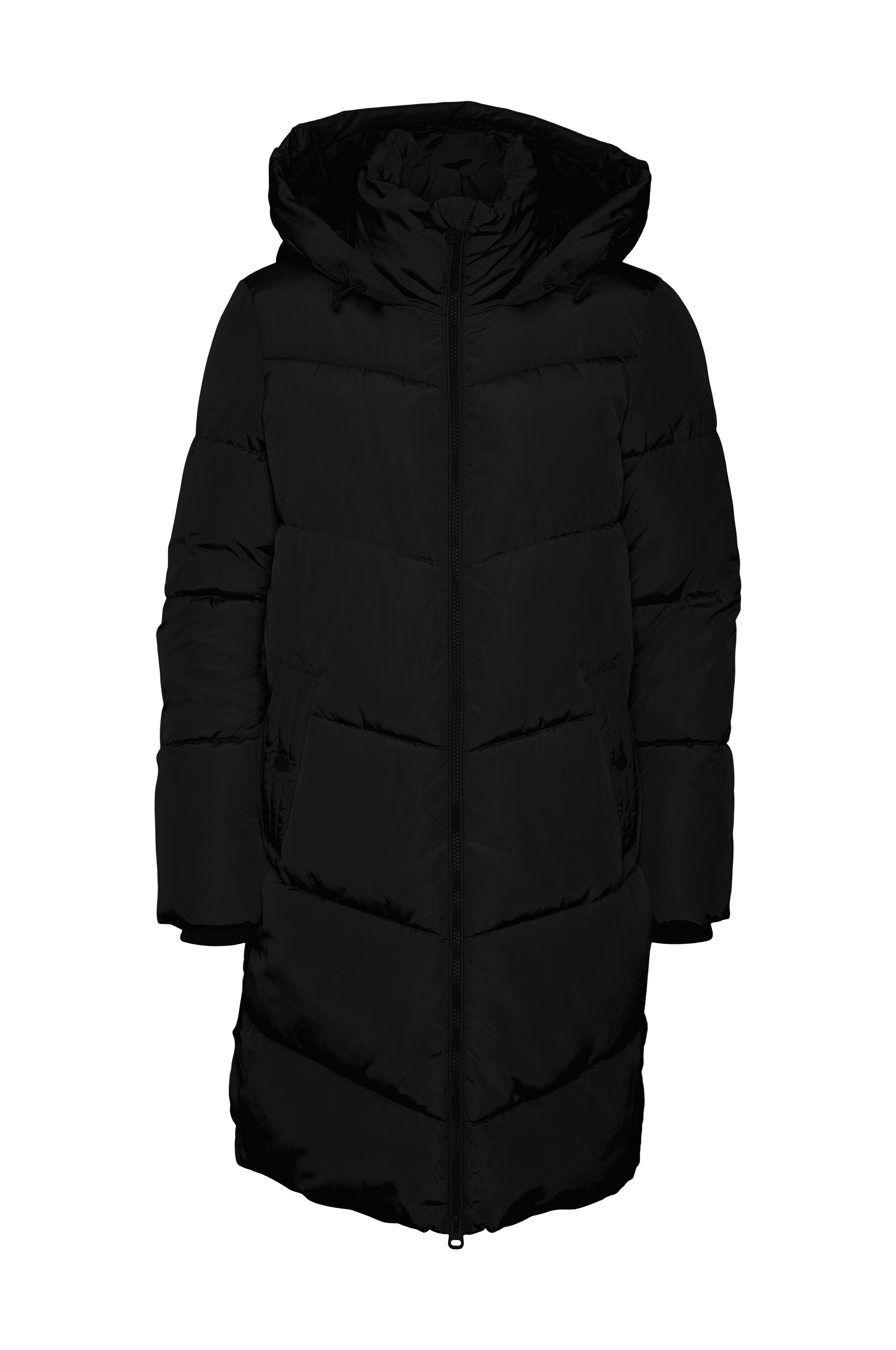 • Quiltet, foret frakke • Fast hætte med træksnørre • To-vejs lynlås • Ribbede manchetter ved manchetterne • To lommer med trykknap • Slidser med trykknapper nede i siderne • Store størrelser • Længde: 97 cm i størrelse 44