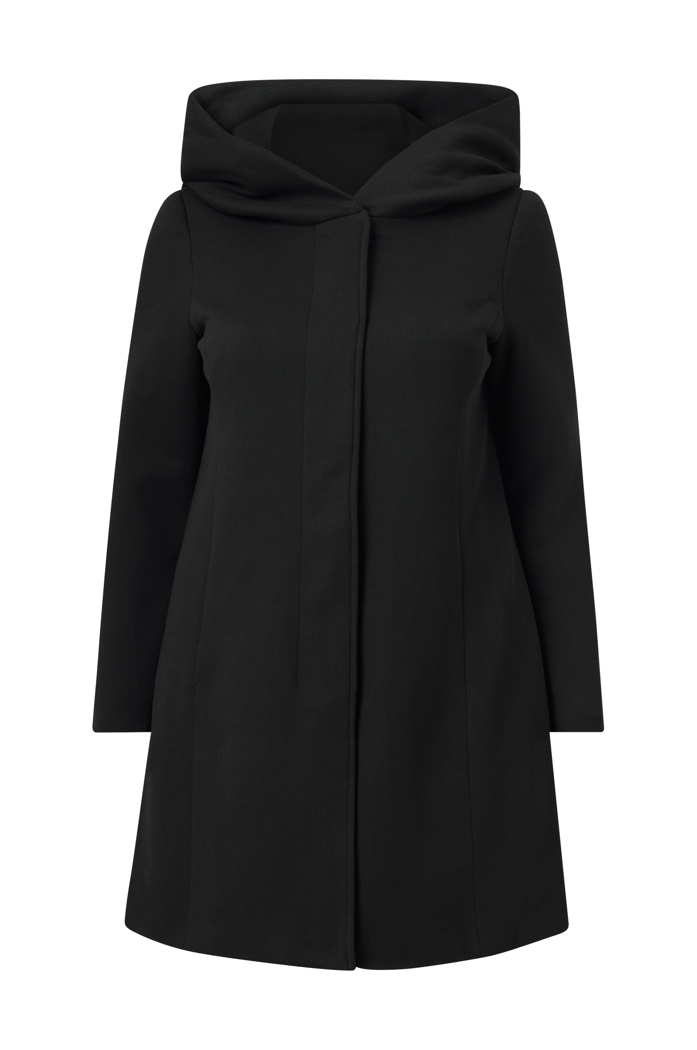 • Store størrelser• Lige model• Knaplukning foran med skjult lynlås og trykknapper• Foret hætte• Indlagte lommer• Tynde skulderpuder• Foret• Længde: 90 cm i størrelse 44