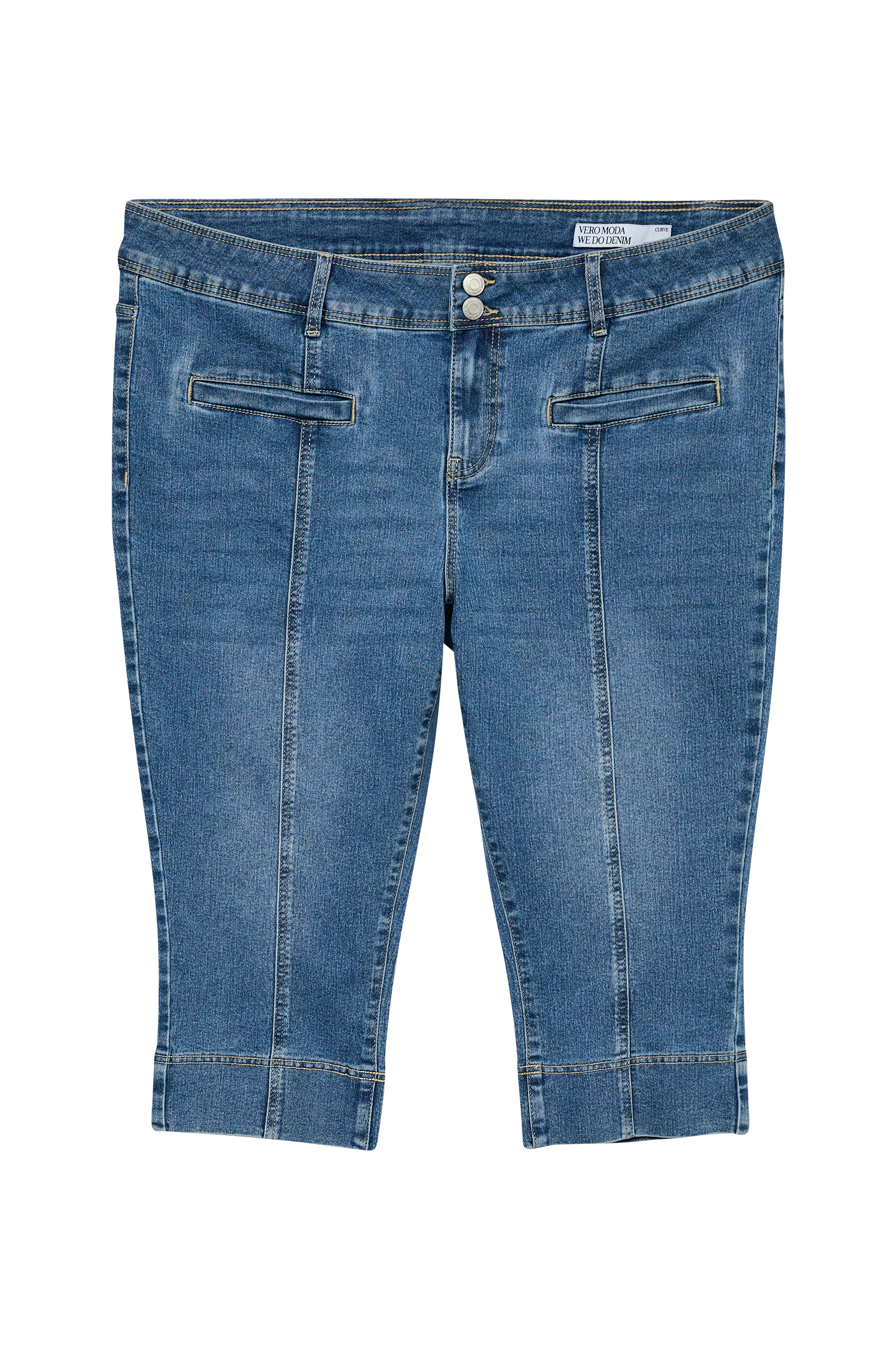 • Jeans med caprilængde• Stropper• Lukning med to knapper• Gylp med lynlås• To lommer foran• To baglommer• Strækdenim• Store størrelser• Indre benlængde: 42 cm i størrelse 44