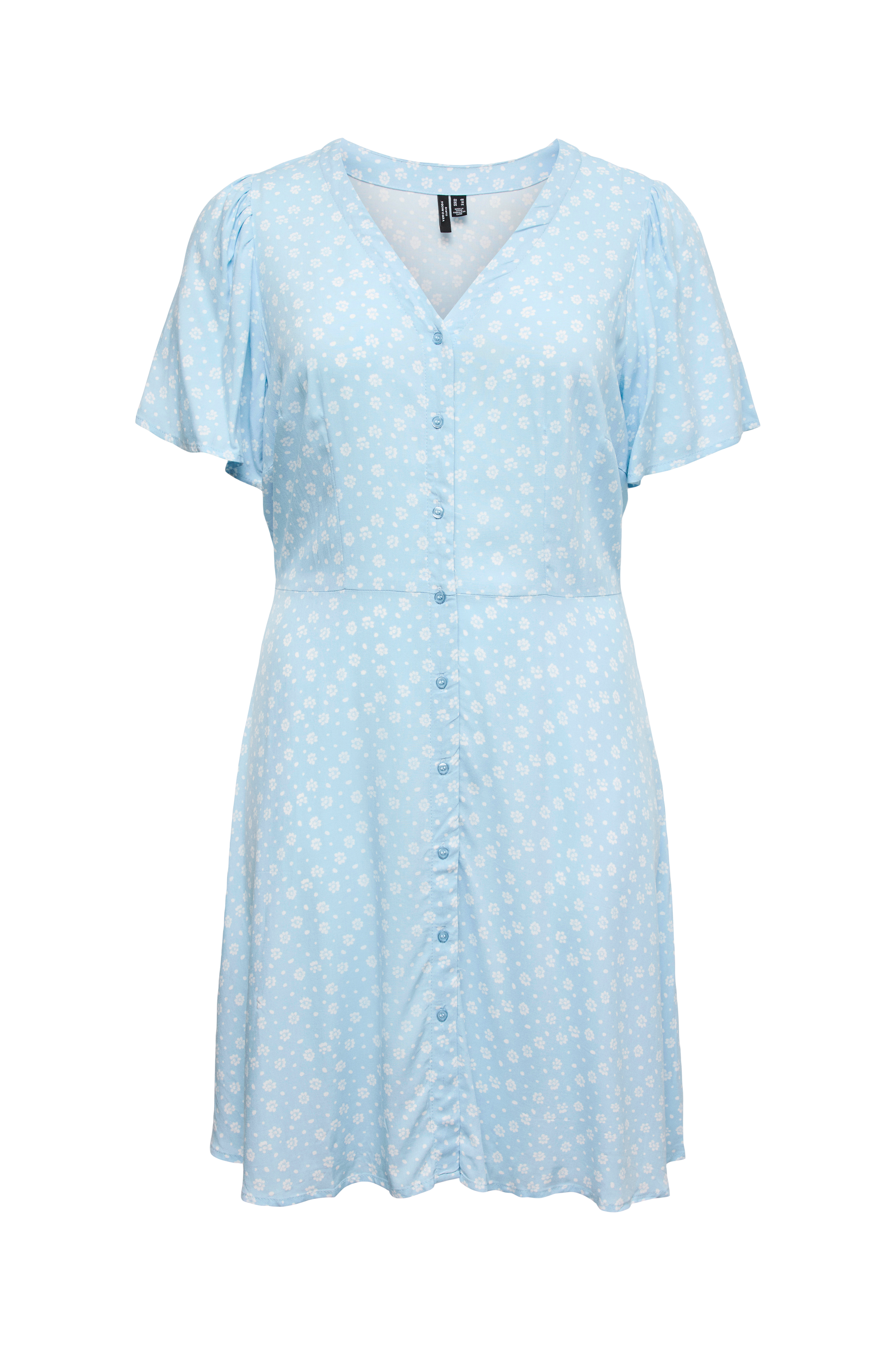 • Kjole i viskose• V-formet halsudskæring• Korte, brede ærmer• Knapper langs forsiden• Bindebånd ved taljen• Store størrelser• Længde: 98 cm i størrelse 42