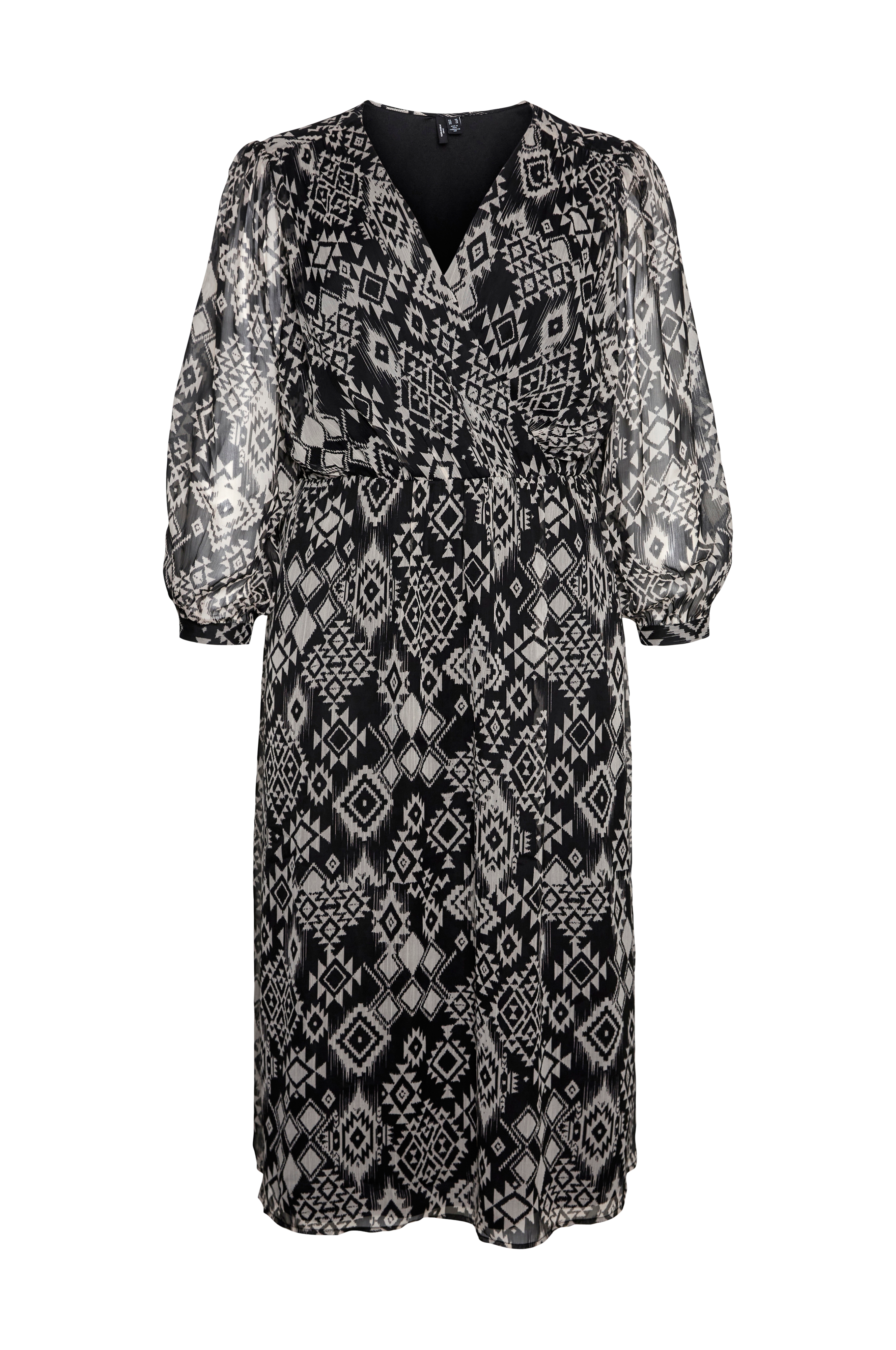 • Kjole i chiffon• V-udskæring med slå-om• Transparente ballonærmer med tynd manchet• Elastisk talje• Trikotfor• Store størrelser• Længde: 125 cm i størrelse 44