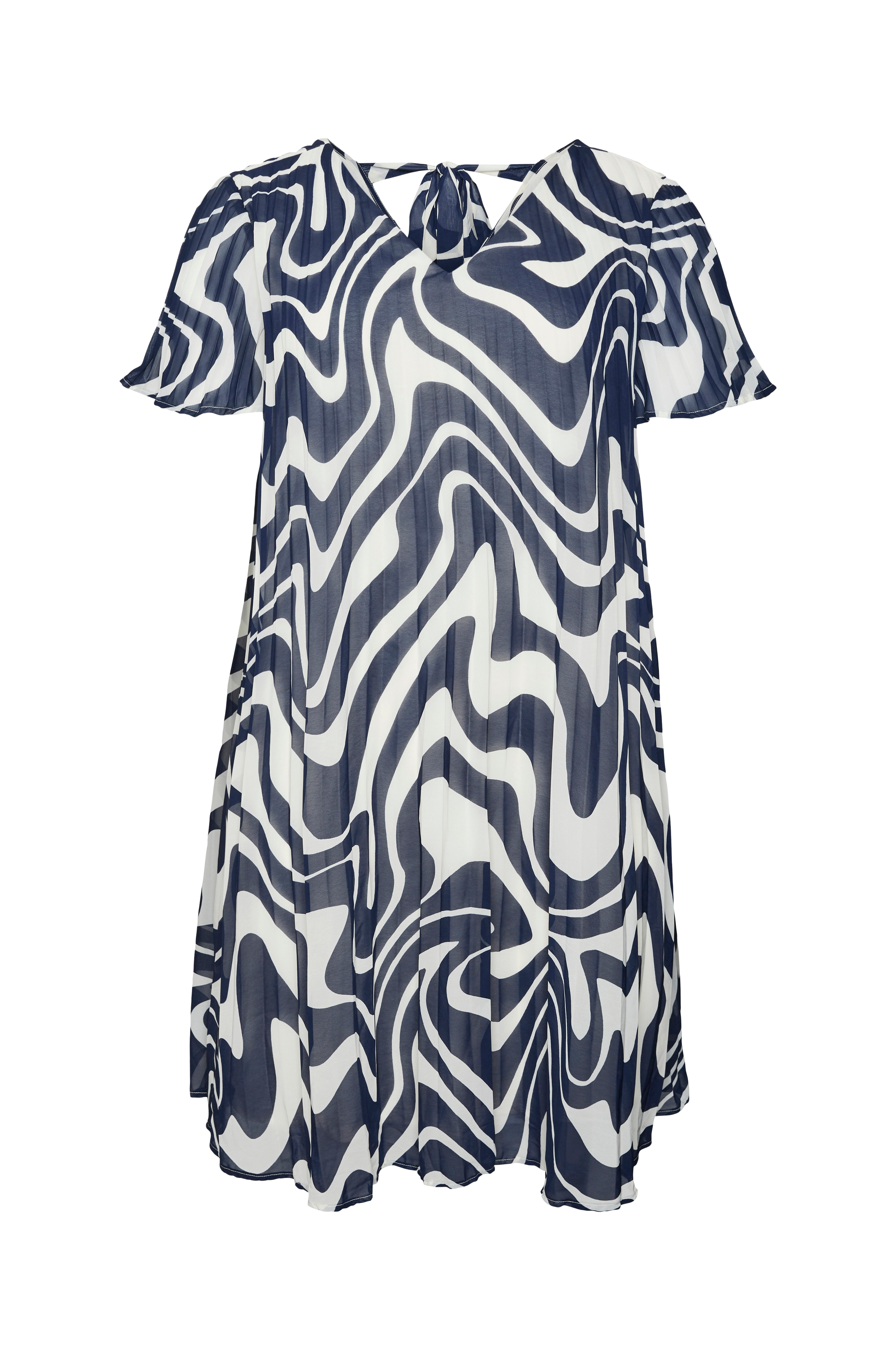 • Store størrelser• Plisseret model med svaj i chiffon• V-formet halsudskæring med ventilation og lange bindebånd i nakken• Kort, bredt ærme• Foret• Længde: 102 cm i størrelse 44