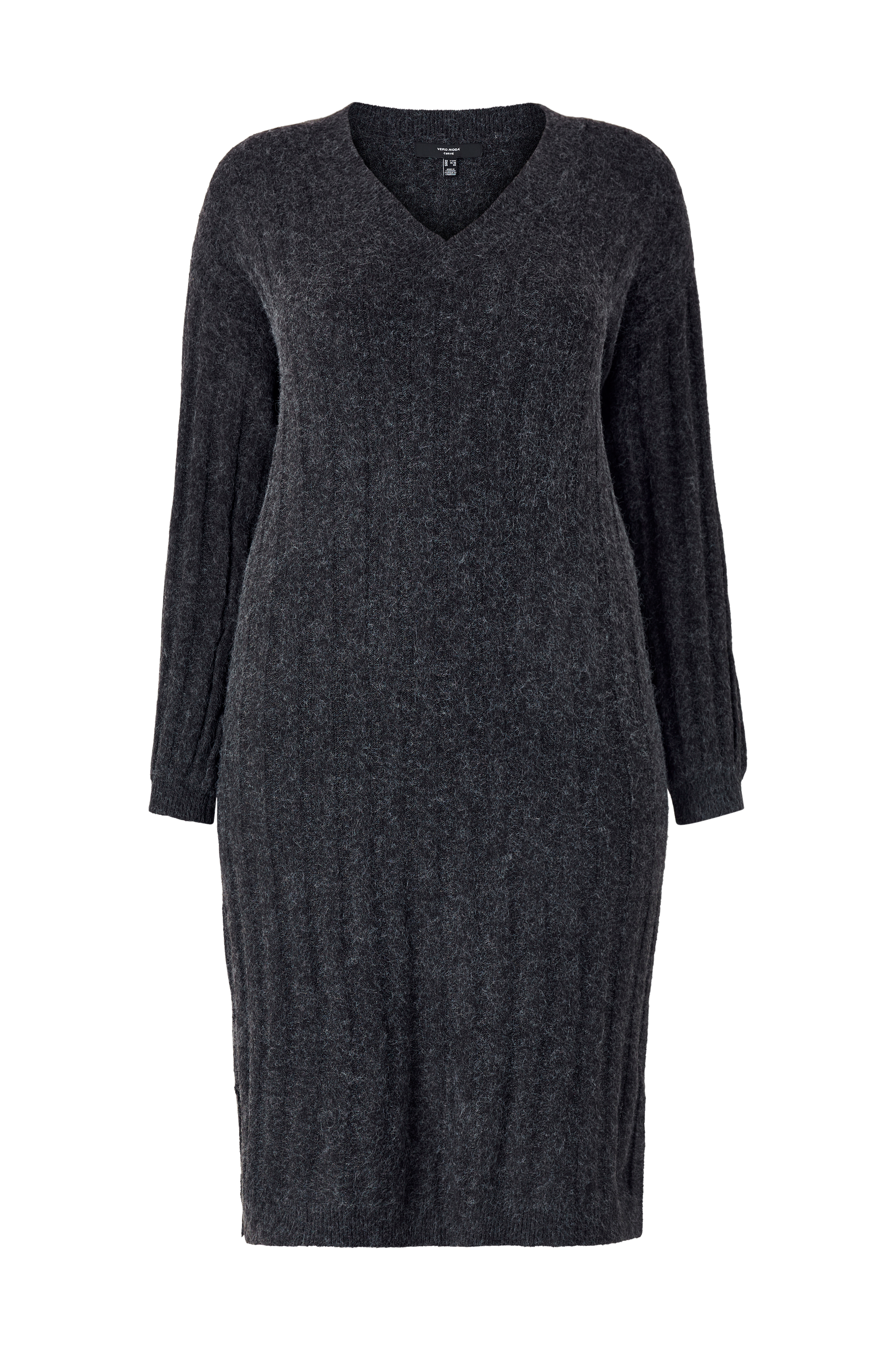 • Strikket kjole • Lige model • V-formet halsudskæring • Blød, ribbet struktur • Ribkanter ved ærmeafslutningerne og nederst • Store størrelser • Længde: 121 cm i størrelse 42/44 • Produktet indeholder genindvundet materiale, som genbruges for at reducere mængden af affald samtidigt med at der ikke anvendes nye ressourcer.