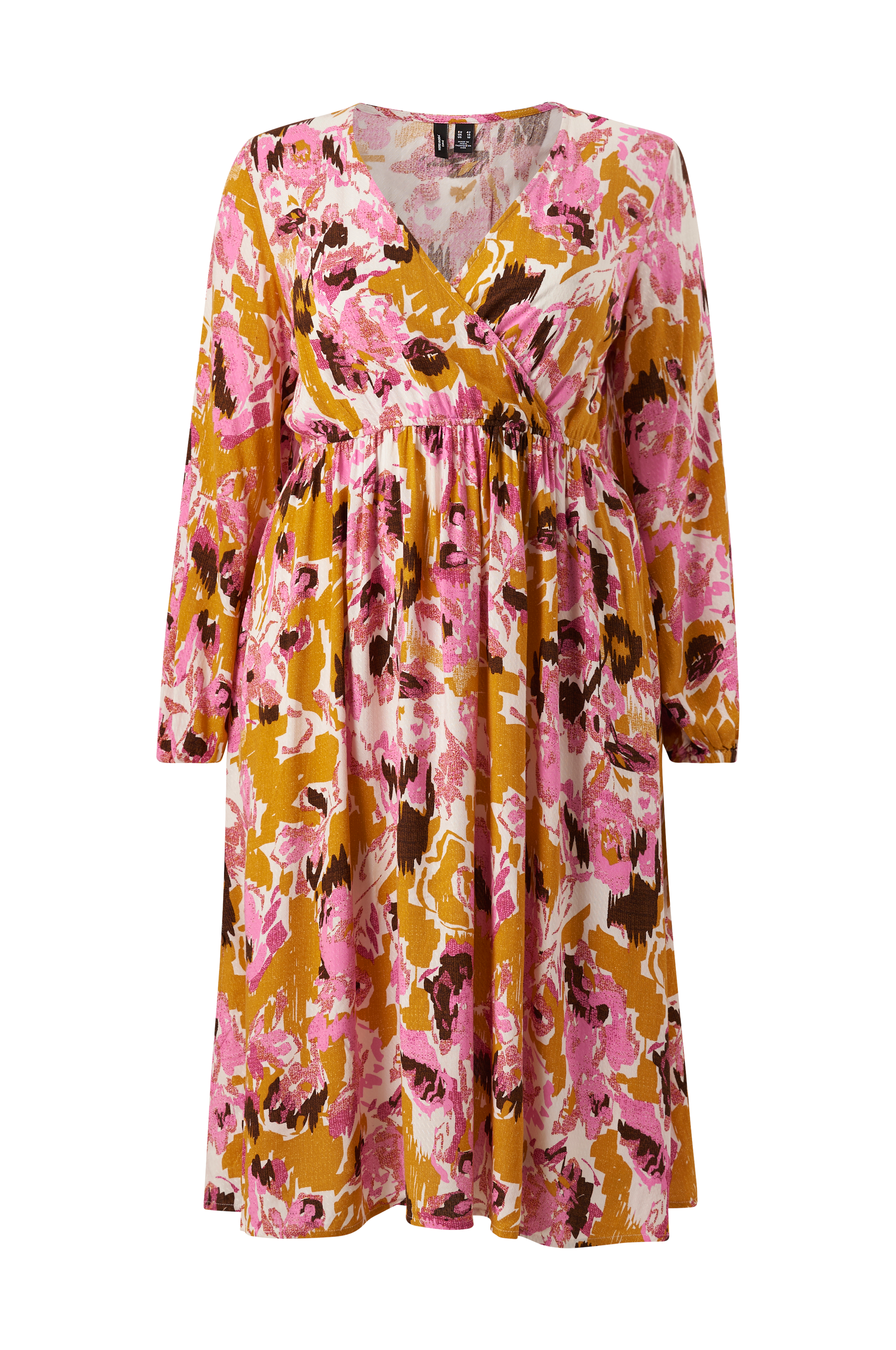 • Kjole i viskose• Slå-om design på toppen• Lange ærmer med elastisk bånd ved manchetterne• Elastik ved taljen• Store størrelser• Længde: 117 cm i størrelse 42