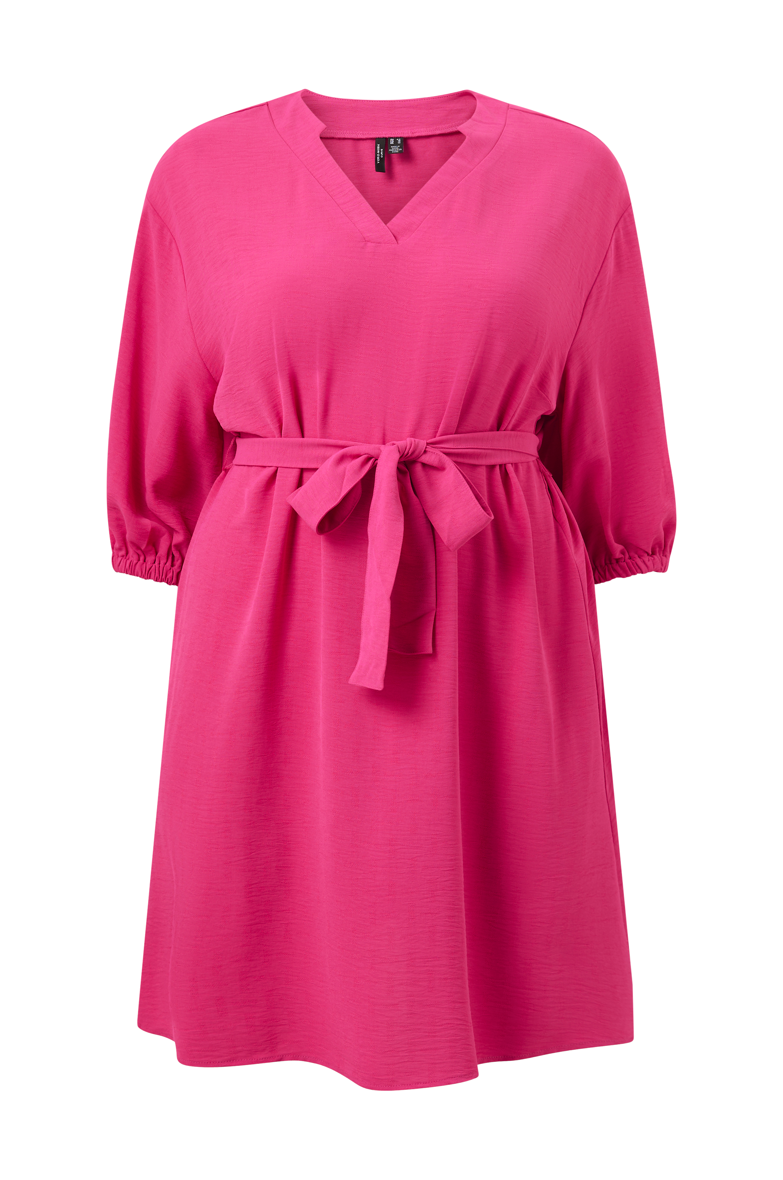 • V-udskæring • 3/4 lange ærmer • Bindebælte ved taljen • Store størrelser • Længde: 98 cm i størrelse 44 • Produktet indeholder genindvundet materiale, som genbruges for at reducere mængden af affald samtidigt med at der ikke anvendes nye ressourcer.