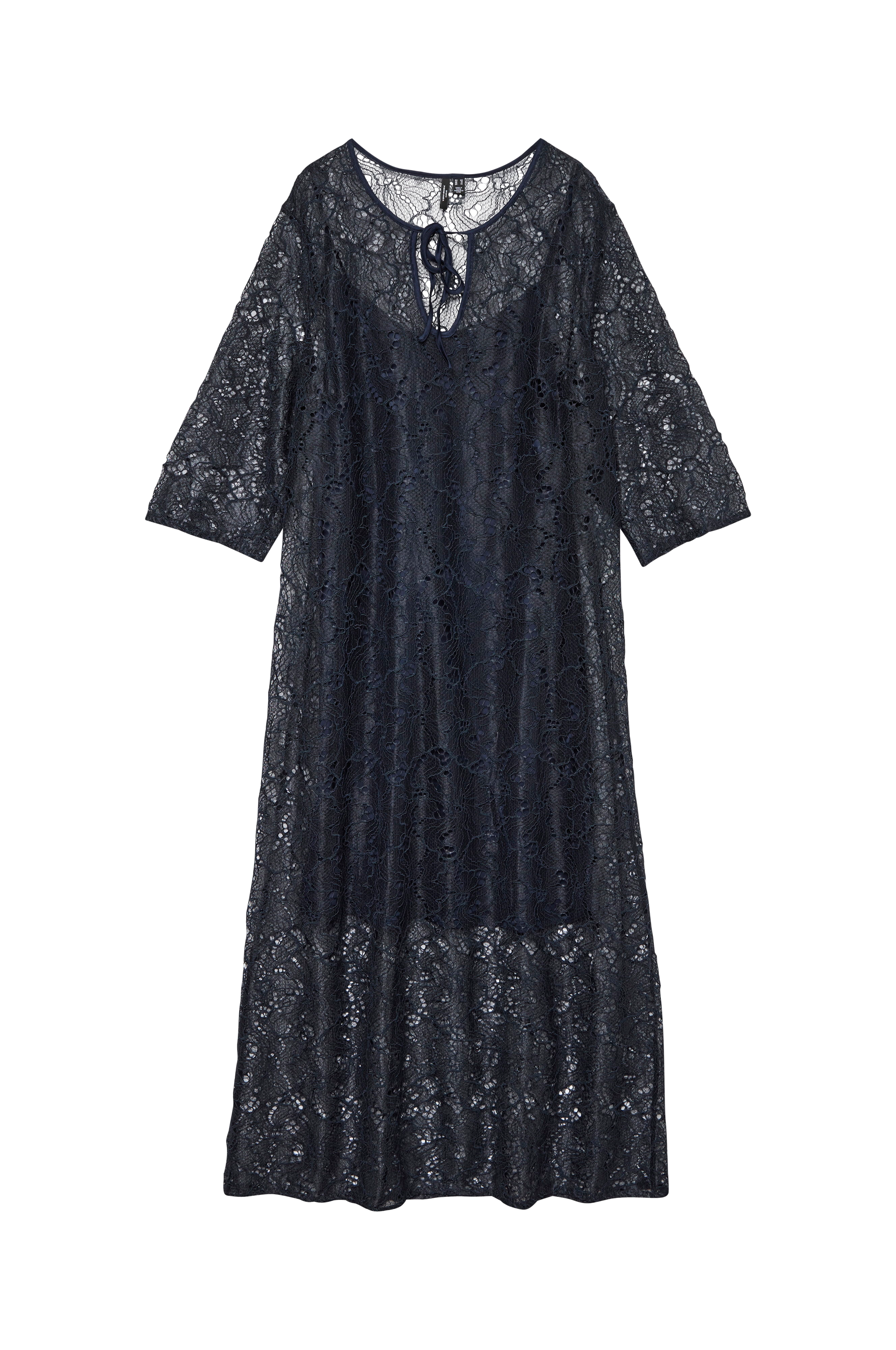 • Store størrelser• Lang model i blonde• Rund hals med bindebånd foran• Lige, 3/4 langt ærme• Udtagelig underkjole i blød trikot• Længde: 145 cm i størrelse 44