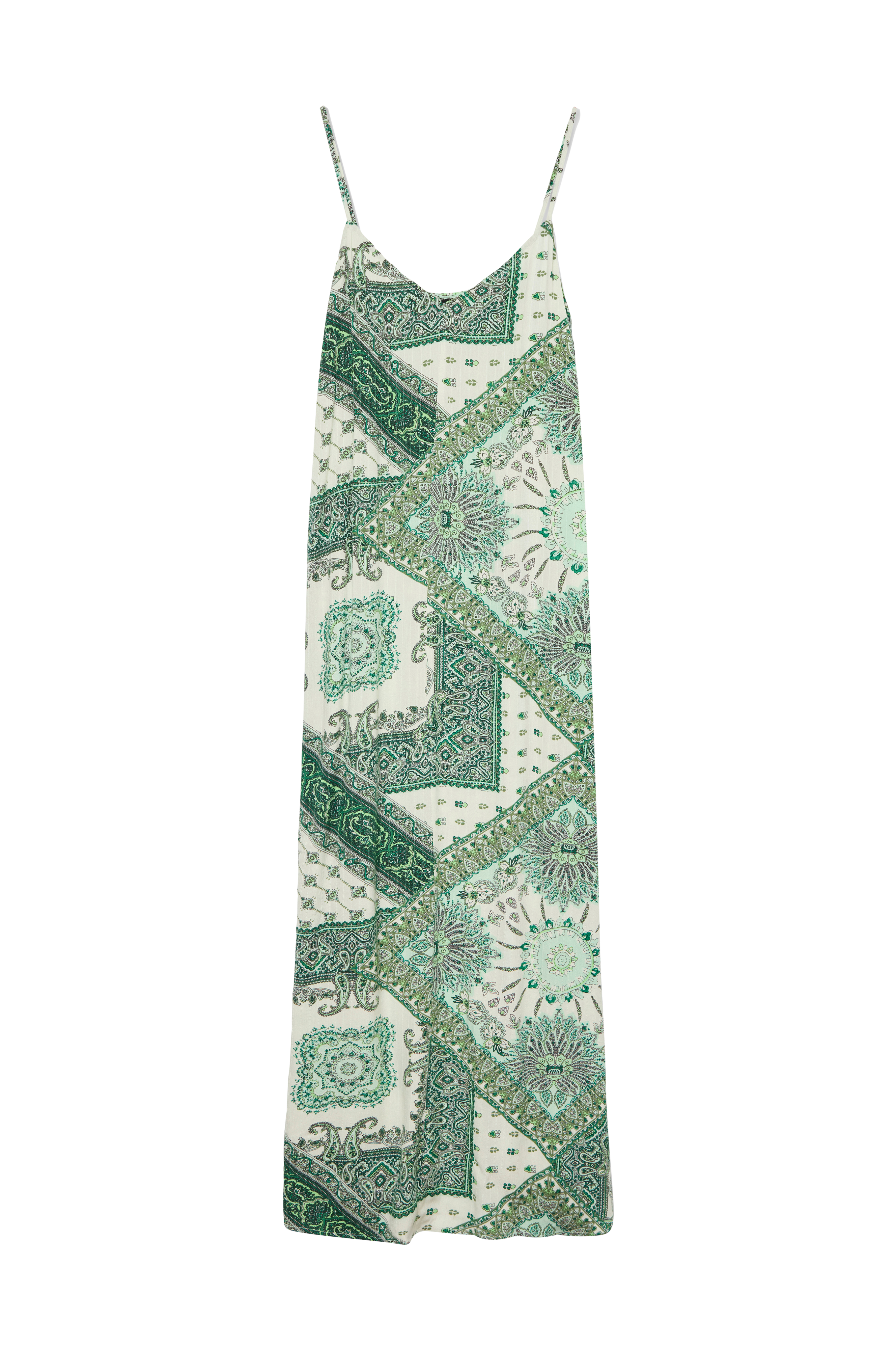 • Lang, mønstret kjole i viskose• Justérbare skulderstropper• V-udskæring• Slids nede i siderne• Store størrelser• Længde: 148 cm i størrelse 44