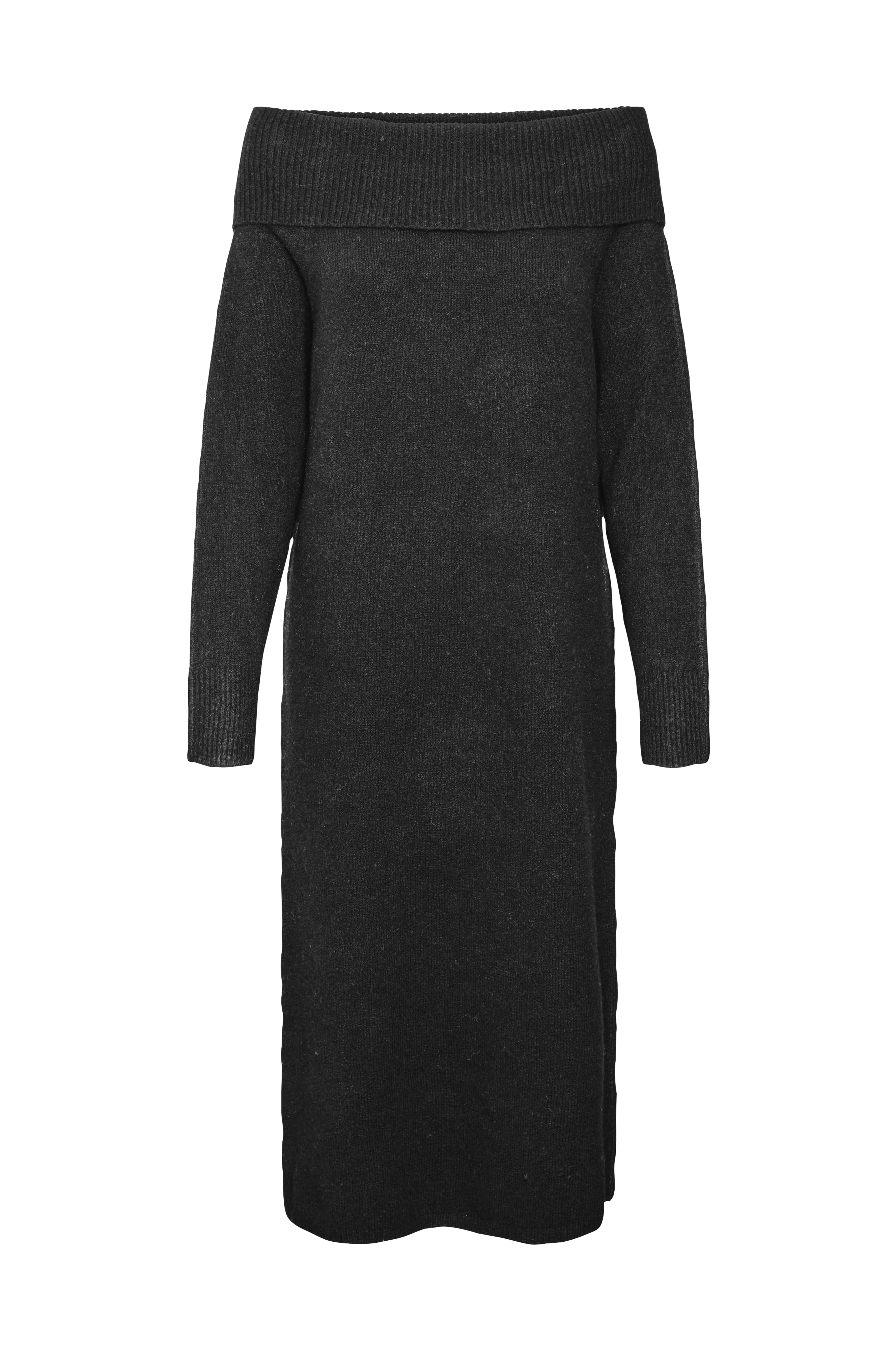 • Langærmet, fintstrikket kjole med off-shoulder design• Smal ribstrik ved manchetterne og nederst• Ribstrikket off-shoulder udskæring• Stor størrelse• Længde: 112 cm i størrelse 42/44