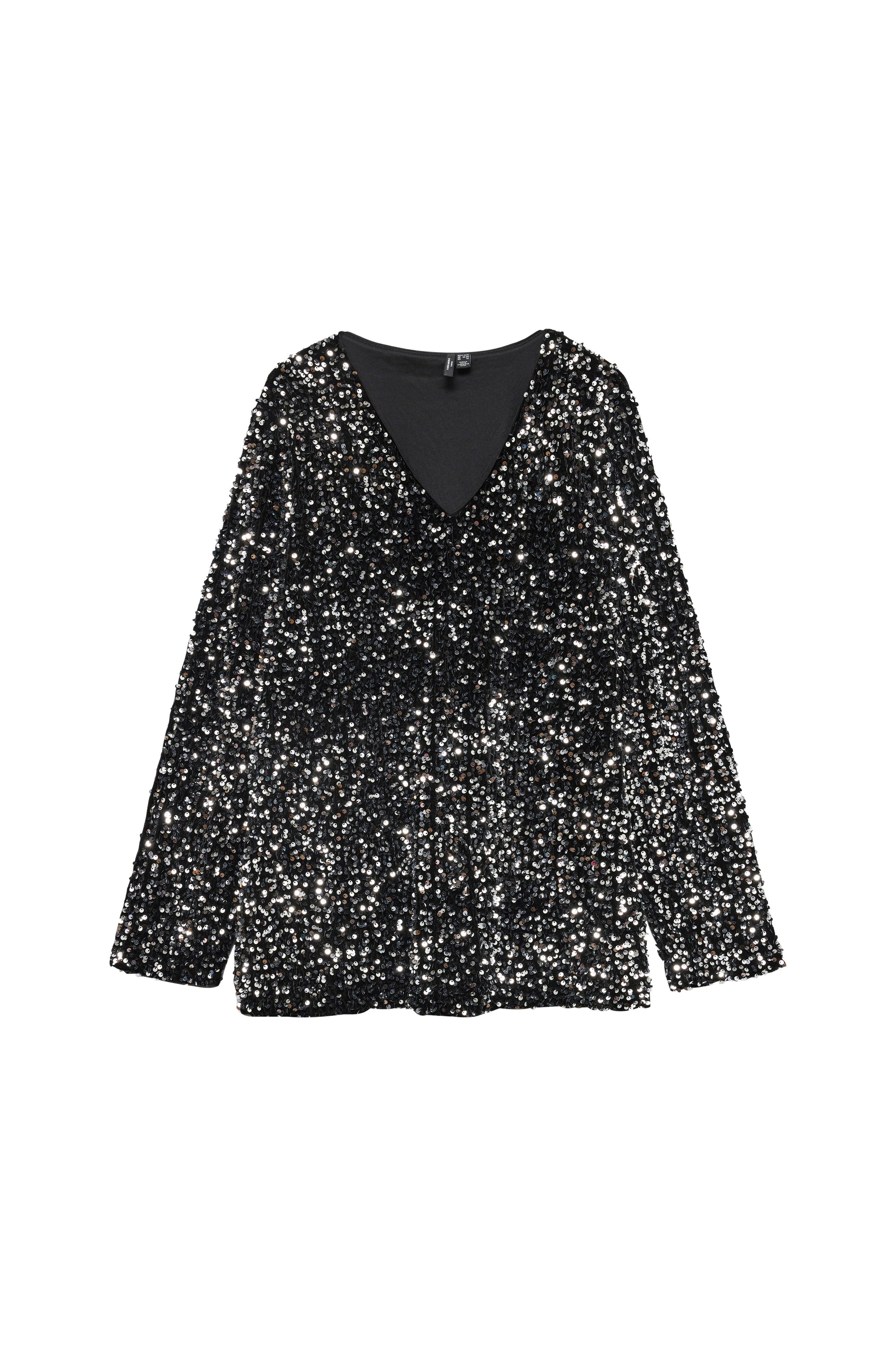 • Top med dekorative pailleter• V-udskæring• Lange ærmer• Plusstørrelser