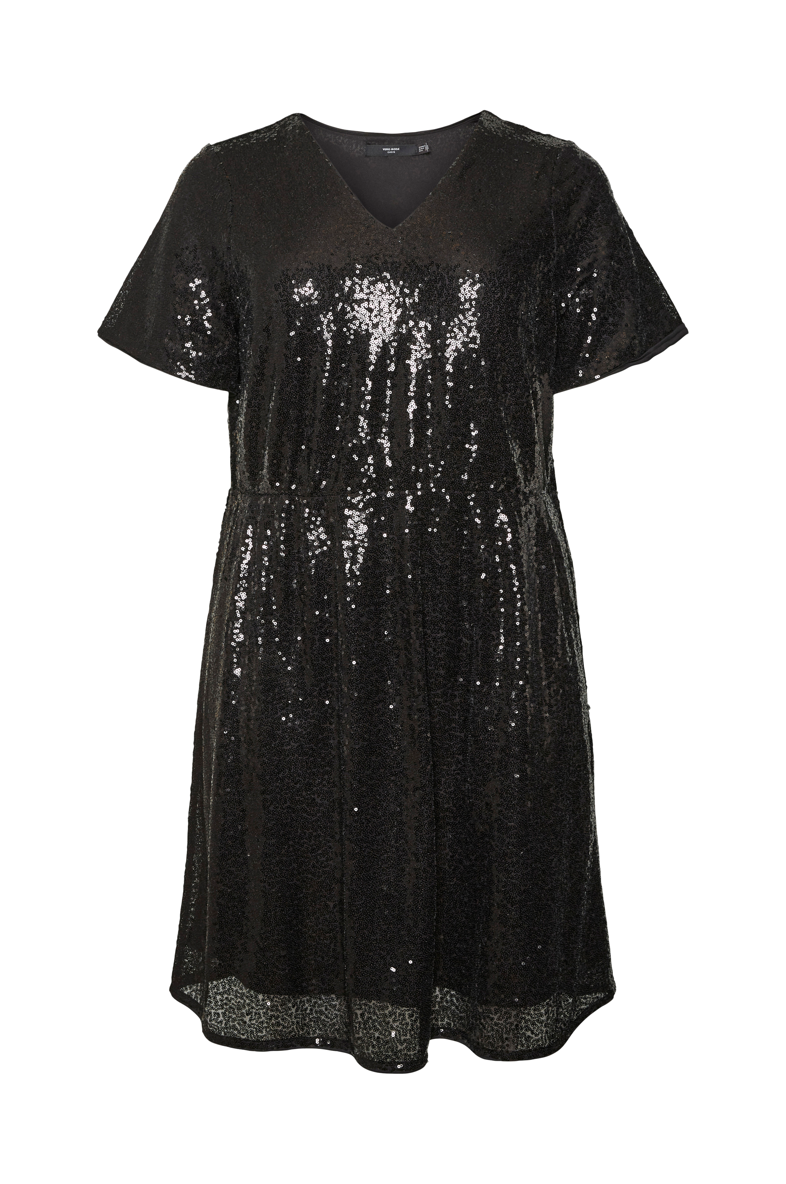 • Elastisk, foret kjole i mesh med dekorative pailletter• V-formet halsudskæring med korte ærmer• Store størrelser• Længde: 101 cm i størrelse 42/44