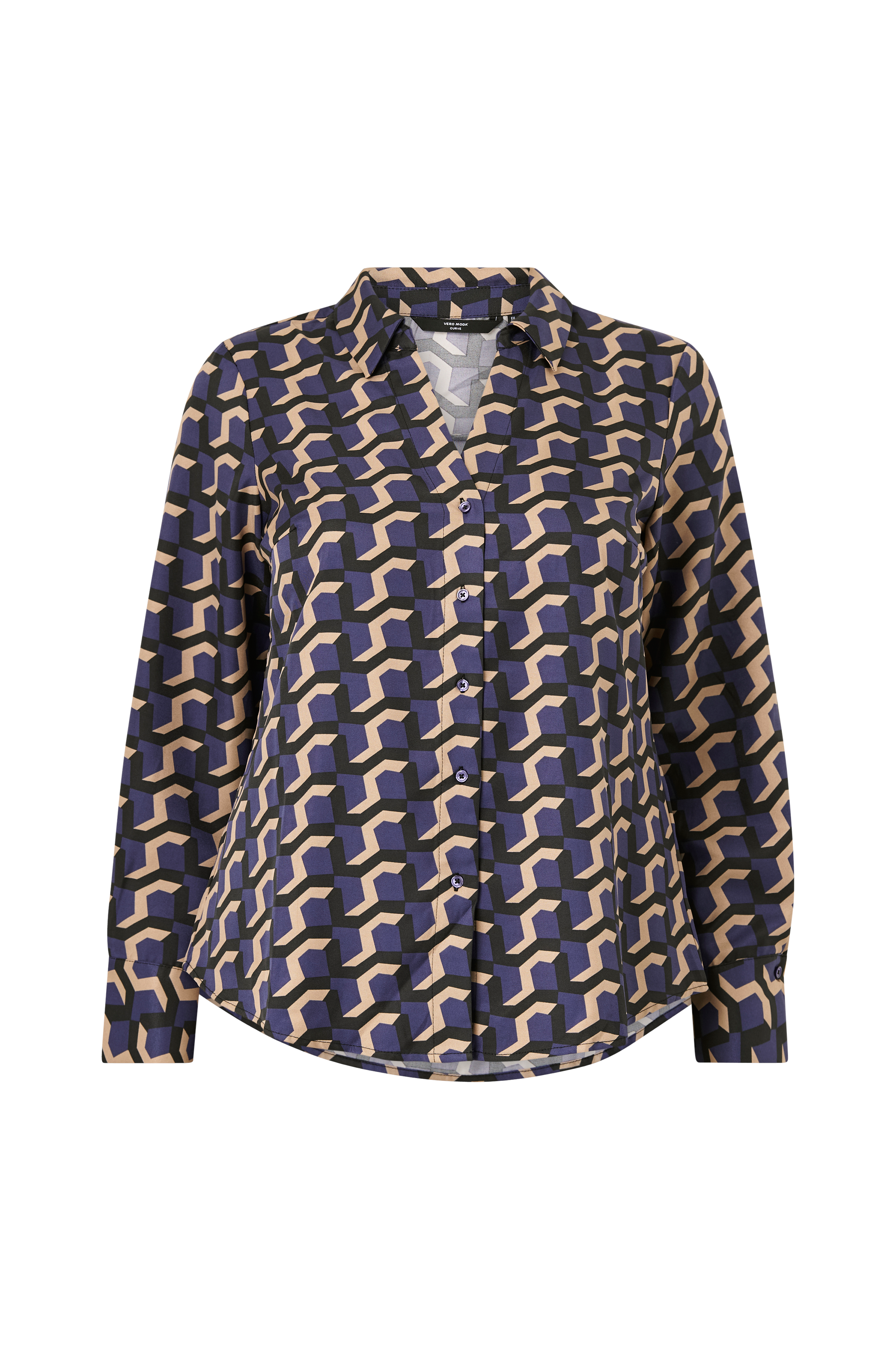 • Mønstret skjorte• V-udskæring med krave• Knapper foran• Manchet ved manchetterne• Store størrelser