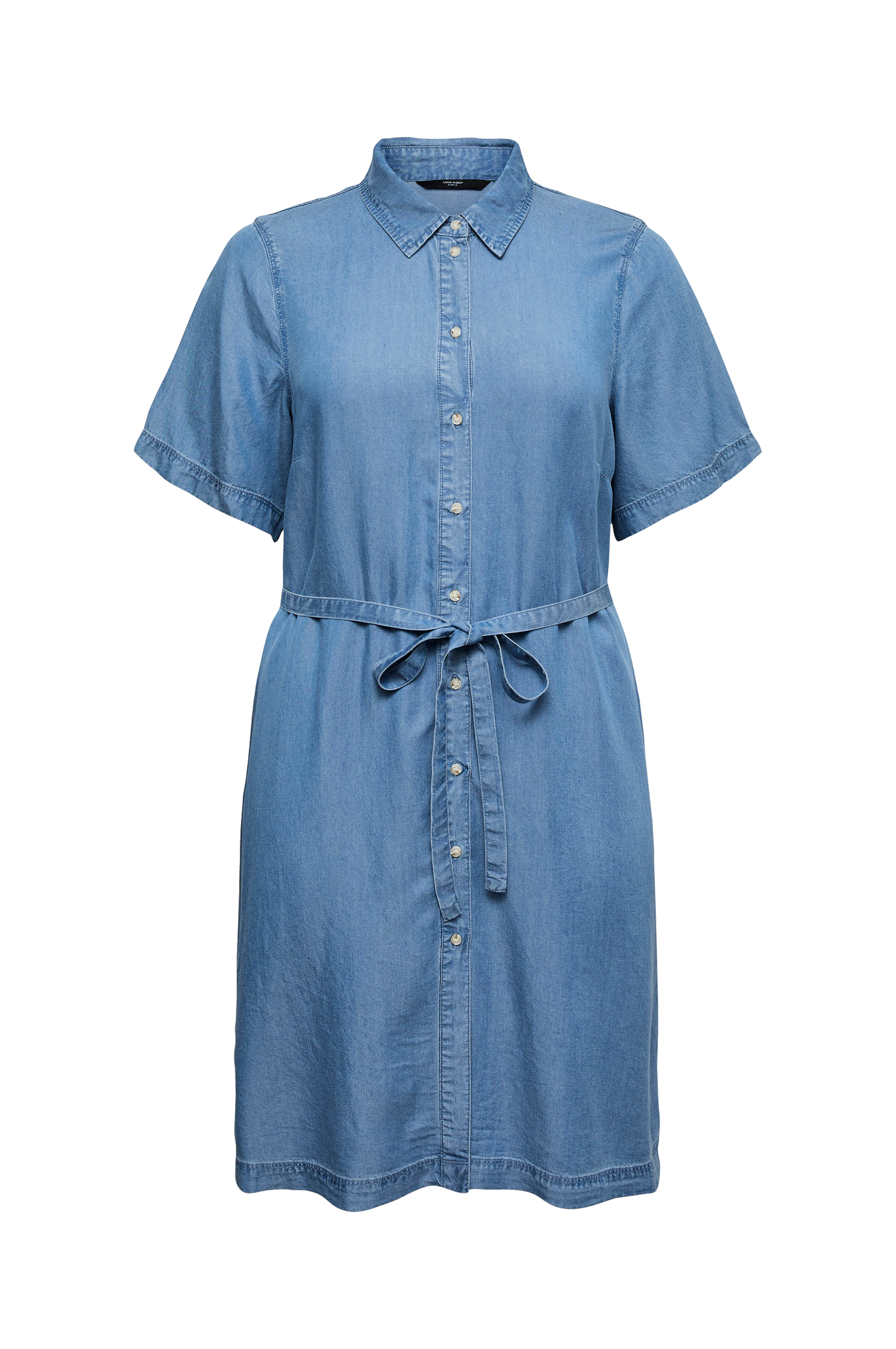 • Blød kjole i lyocell• Krave• Korte ærmer• Knaplukning• Bindebånd ved taljen• Plusstørrelser• Længde: 98 cm i størrelse 44