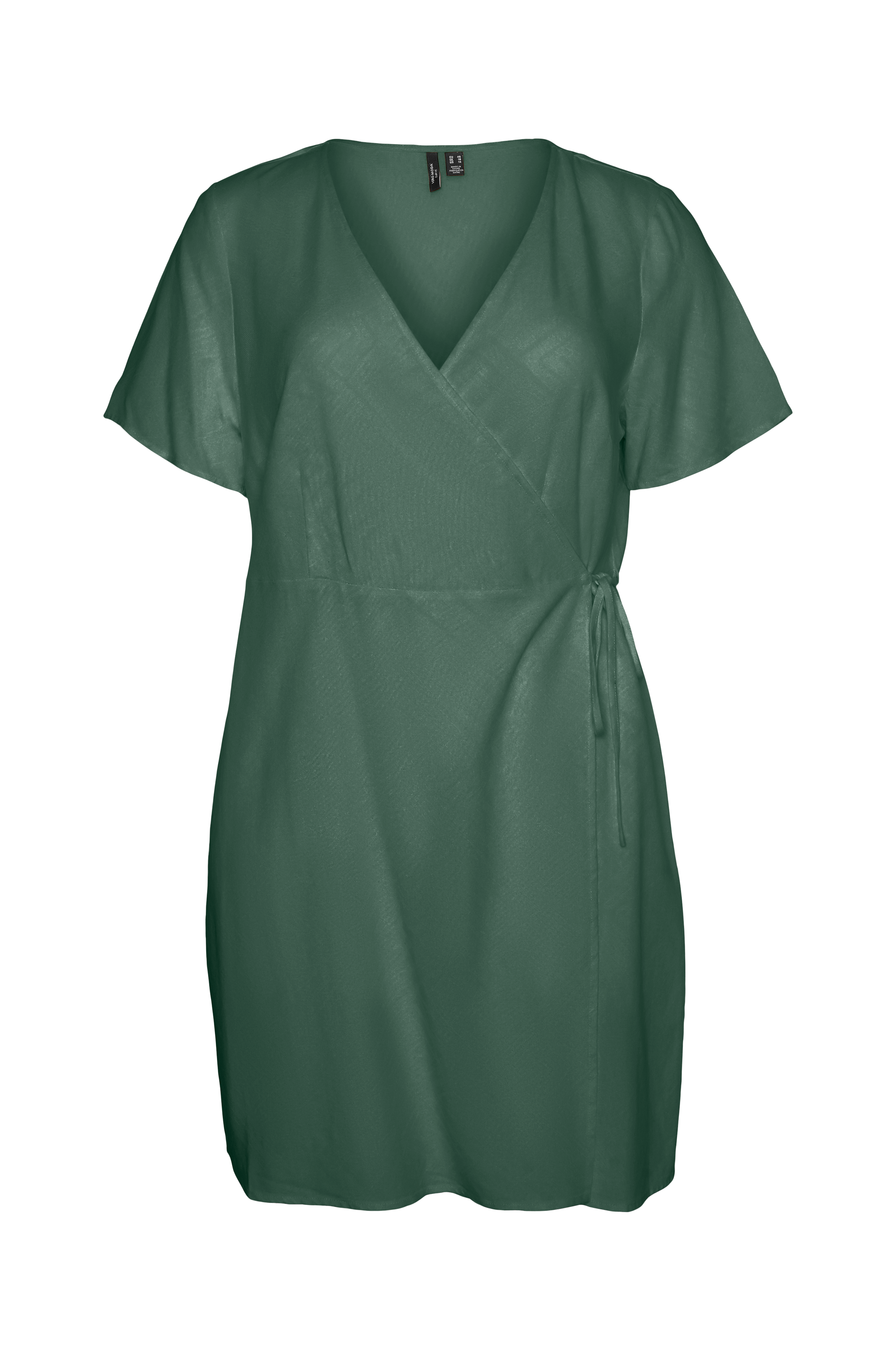 • Fremstillet af hørblanding• Slå-om design med bindebånd i siden• Korte ærmer• Store størrelser• Længde: 95 cm i størrelse 44