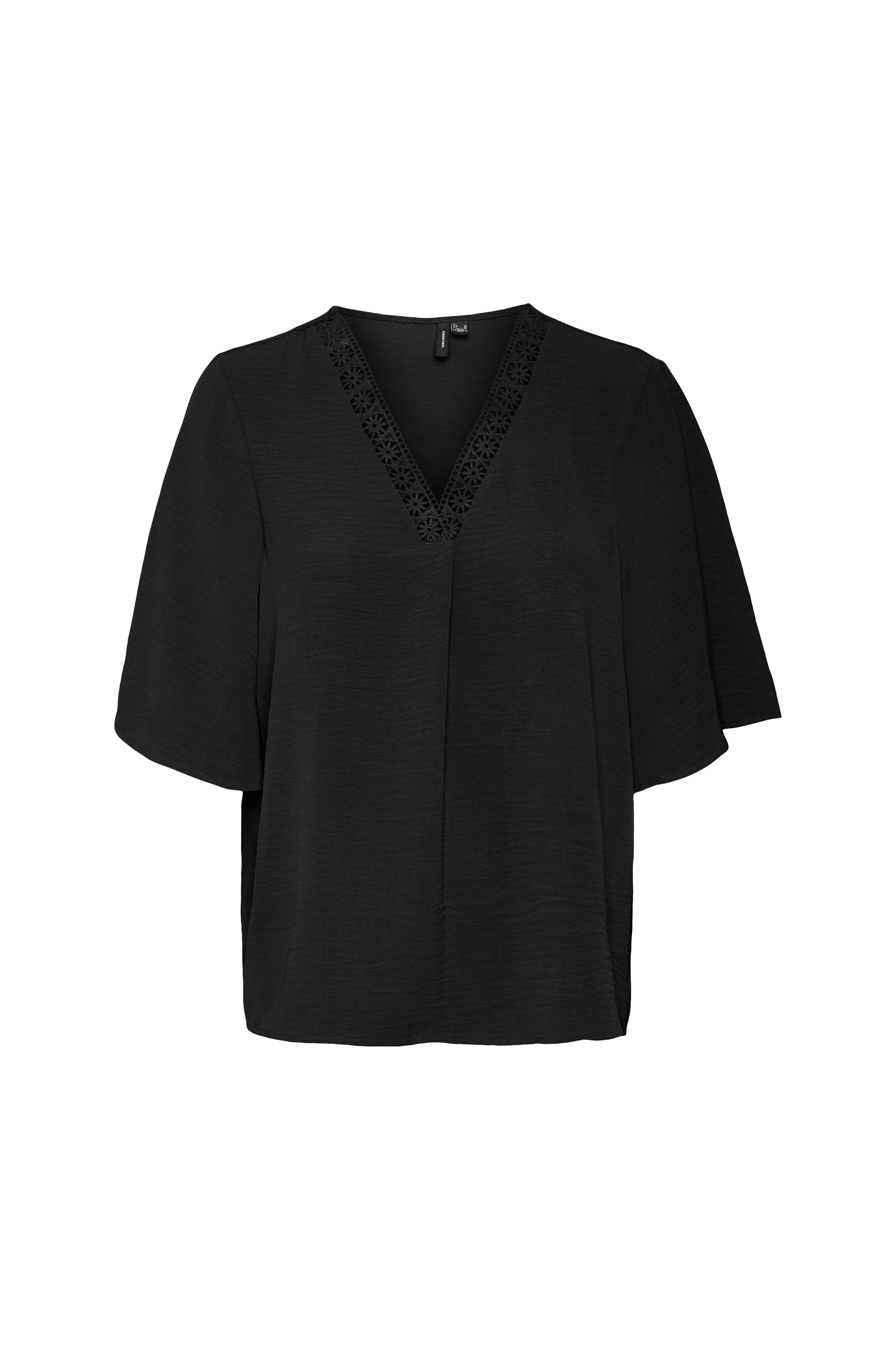 • Store størrelser• Lige model• V-formet halsudskæring med blondekant• Kort, bredt ærme