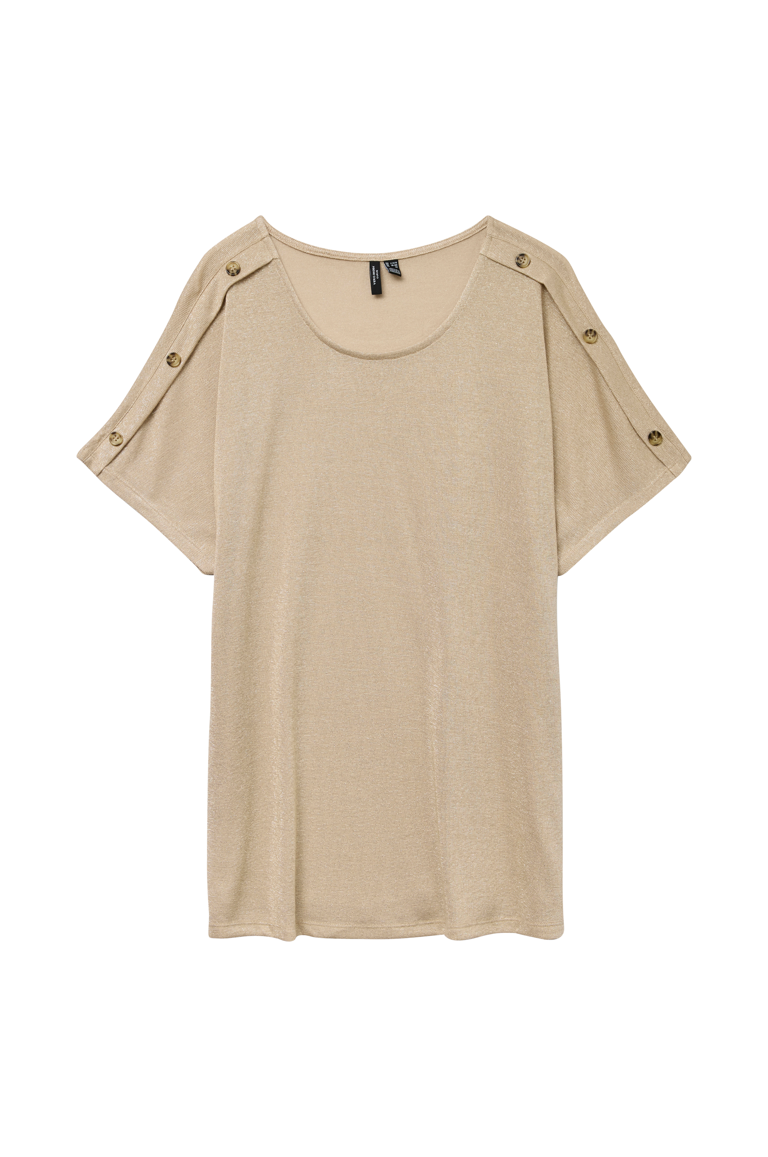 • Store størrelser• Lige, guldglitrende model• Rund hals• Læg med dekorationsknapper på skuldrene