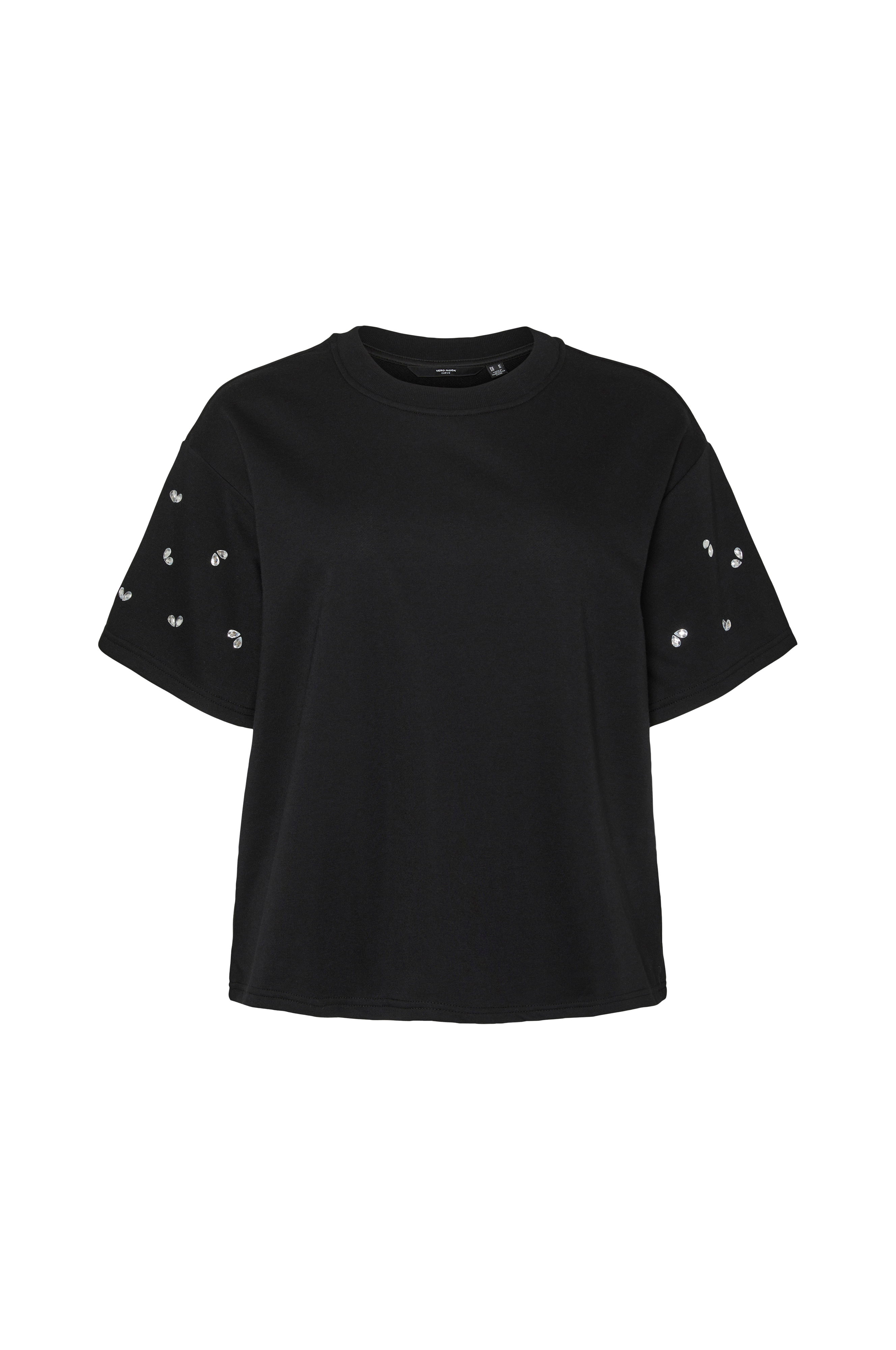 • Top i elastisk jersey med dekorative sten på ærmerne• Rund, ribbet halsudskæring• Korte ærmer• Store størrelser• Længde: 96 cm i størrelse 42/44