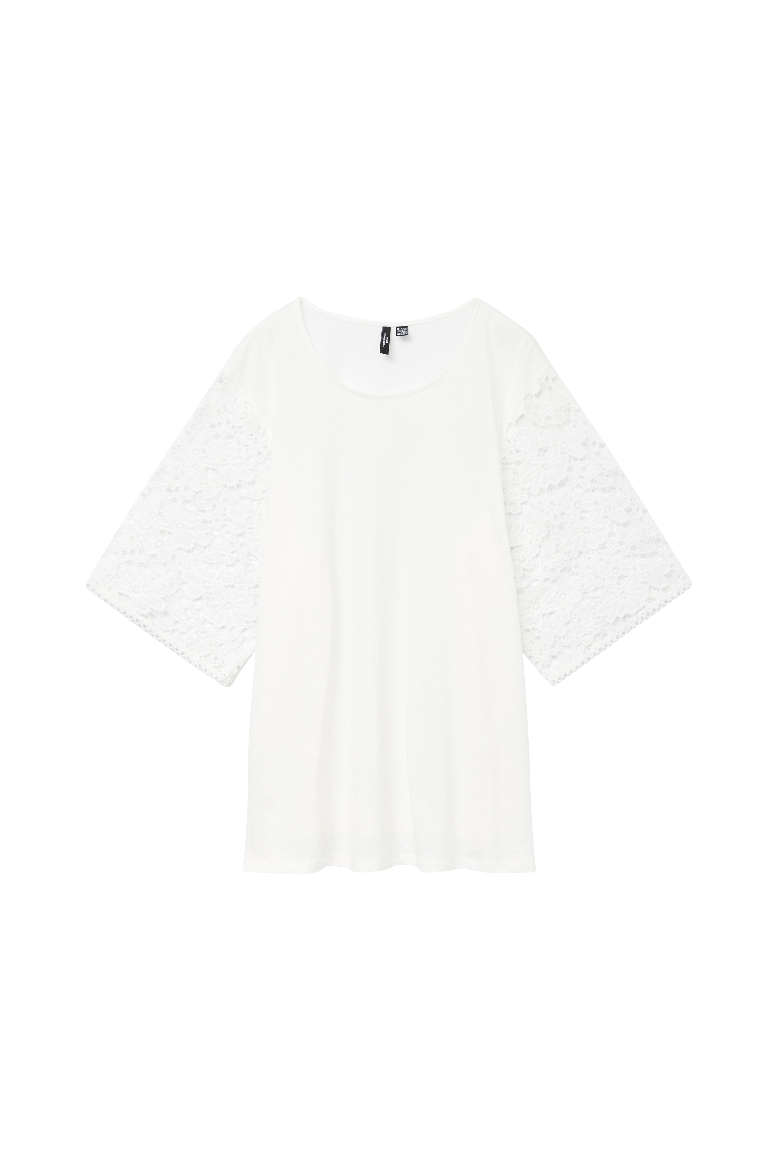 • Store størrelser• Uformel model i jersey• Rund hals• Lige, halvlangt ærme i blonde