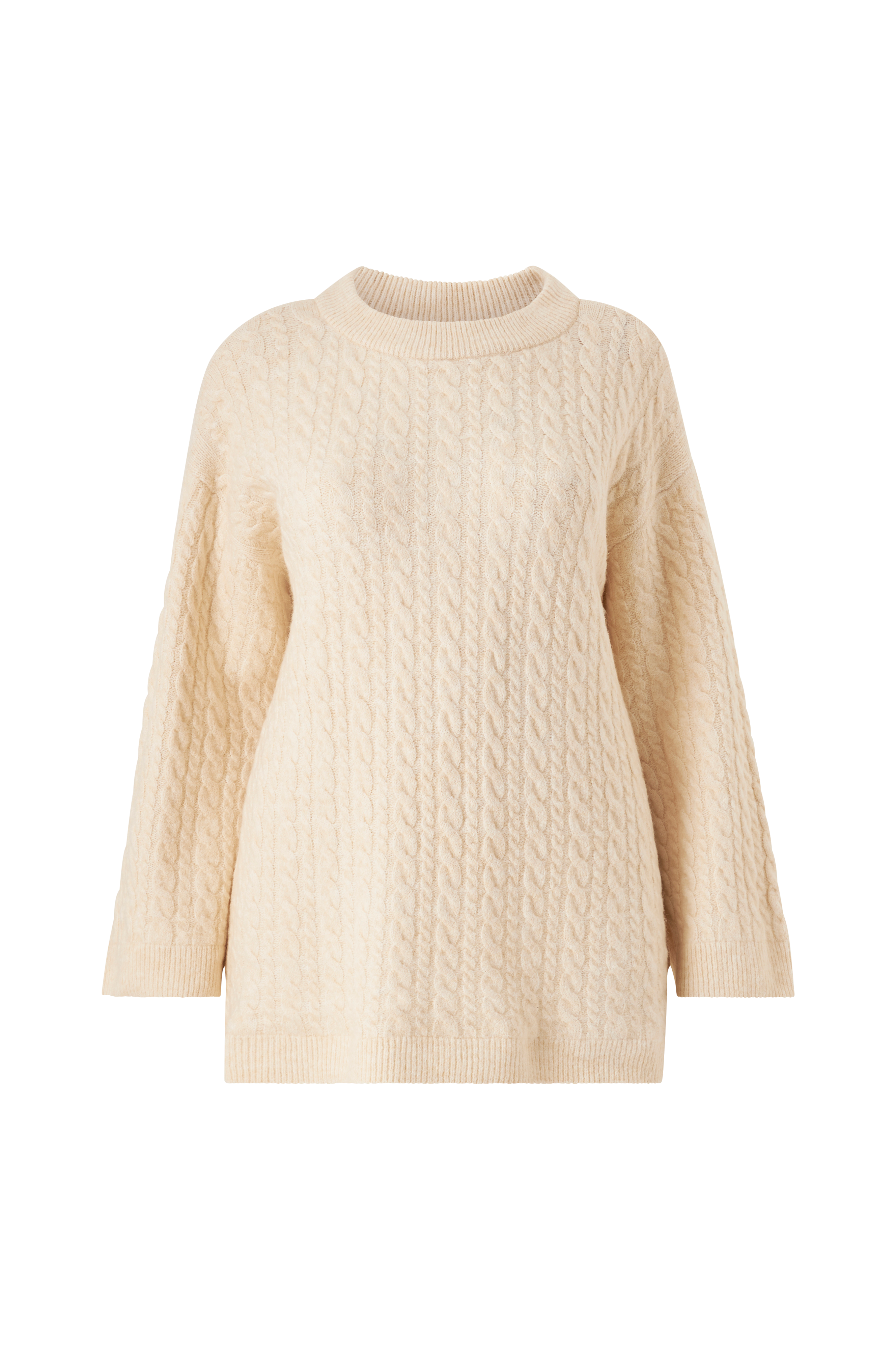 • Kabelstrikket trøje• Længere model• Løs pasform• Brede ærmer