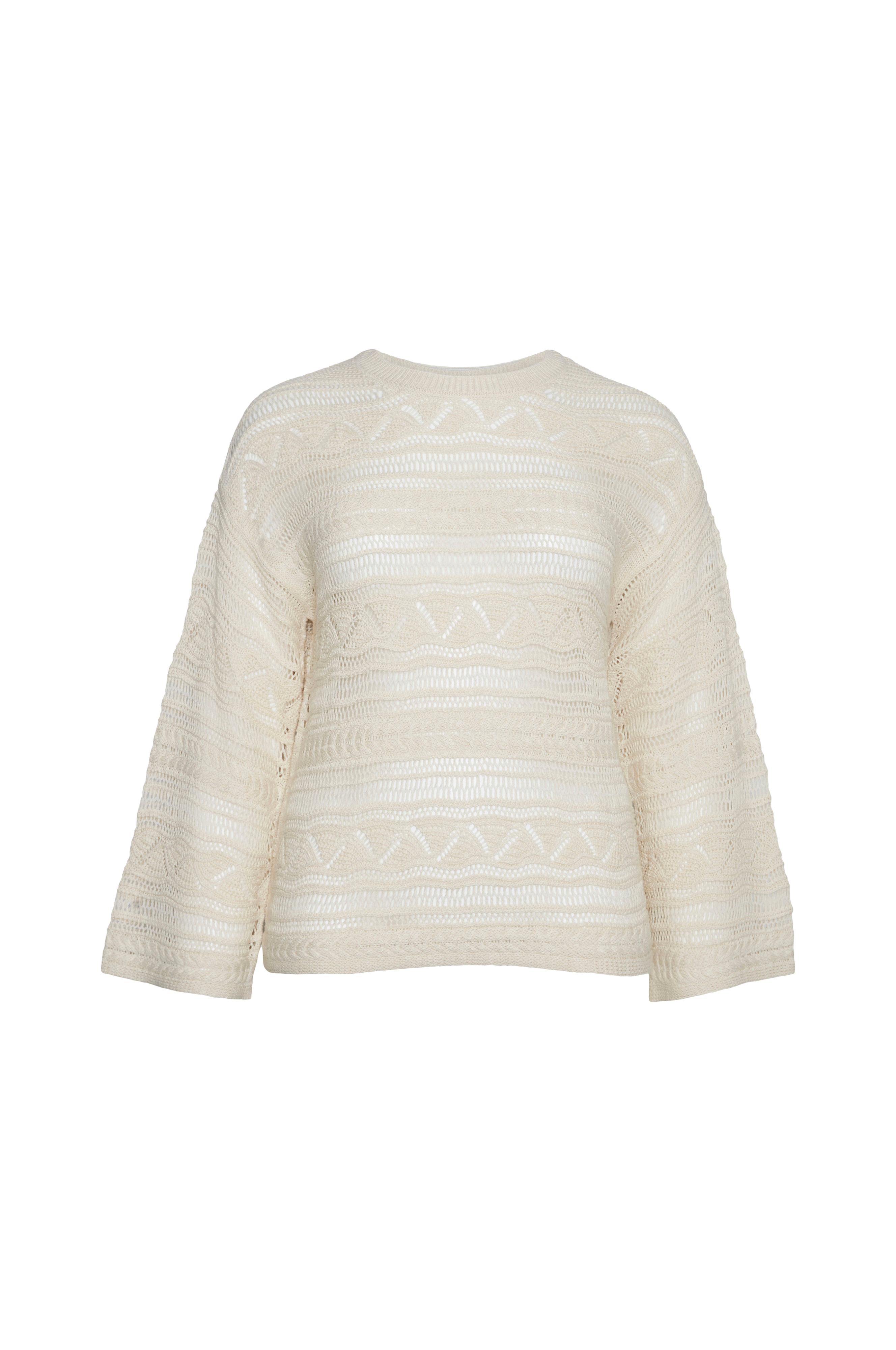• Strukturstrikket trøje med hulmønster• Nedsænkede skuldre• Brede ærmer• Store størrelser