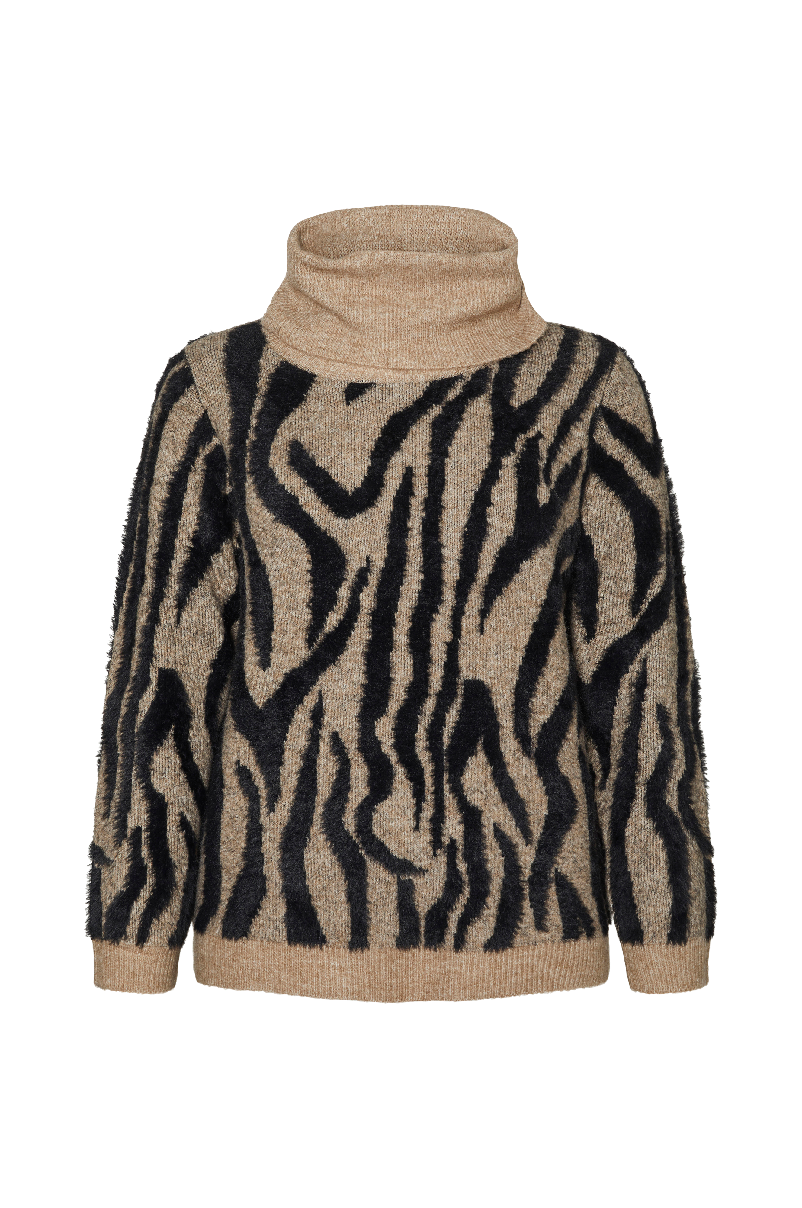 • Store størrelser• Blød, mønsterstrikket model• Høj, ribstrikket krave• Langt ærme med lille ribkant• Ribstrik ved nederste kant