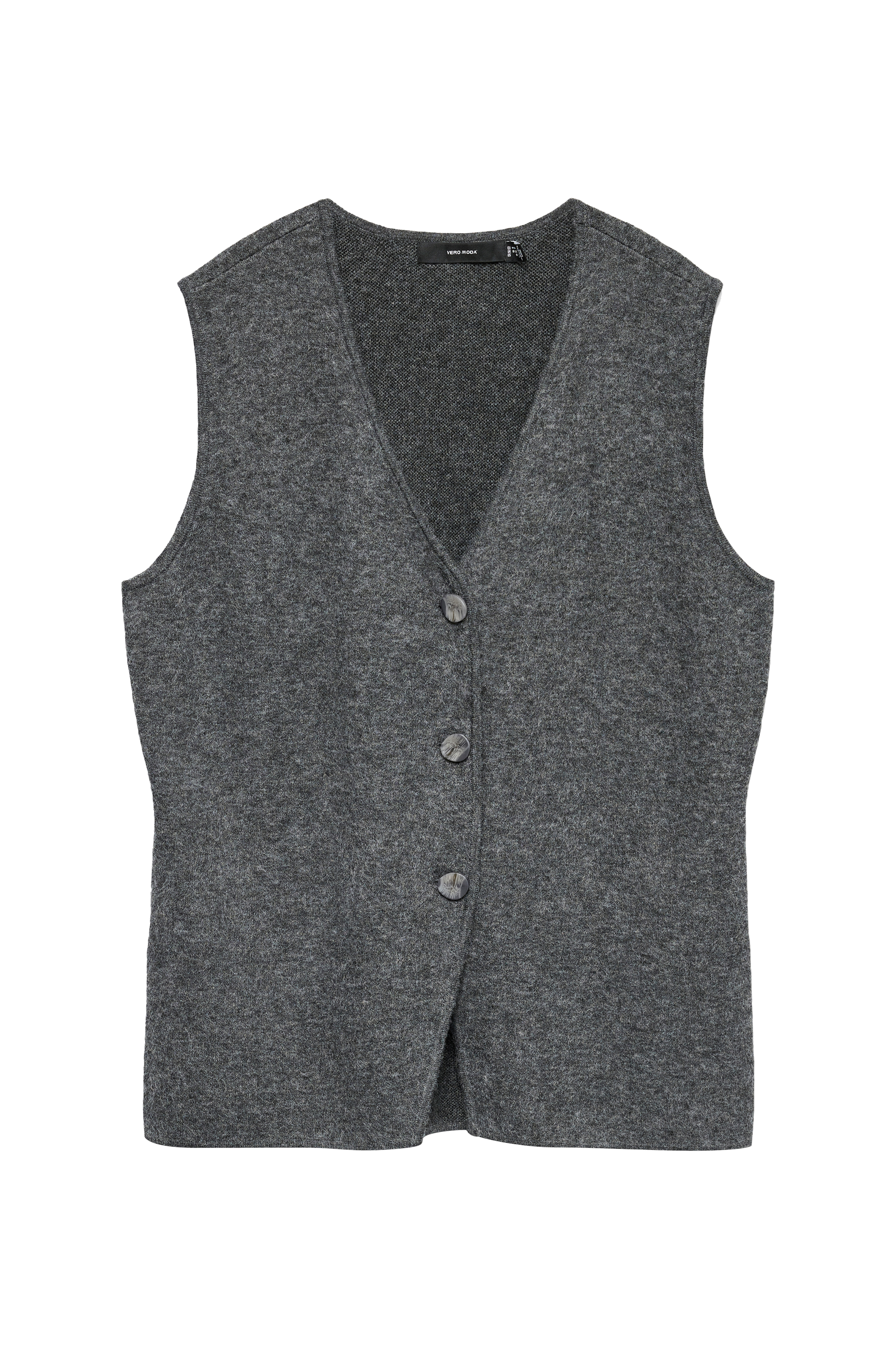 • Fintstrikket vest med v-formet halsudskæring• Knapper foran• Plusstørrelser