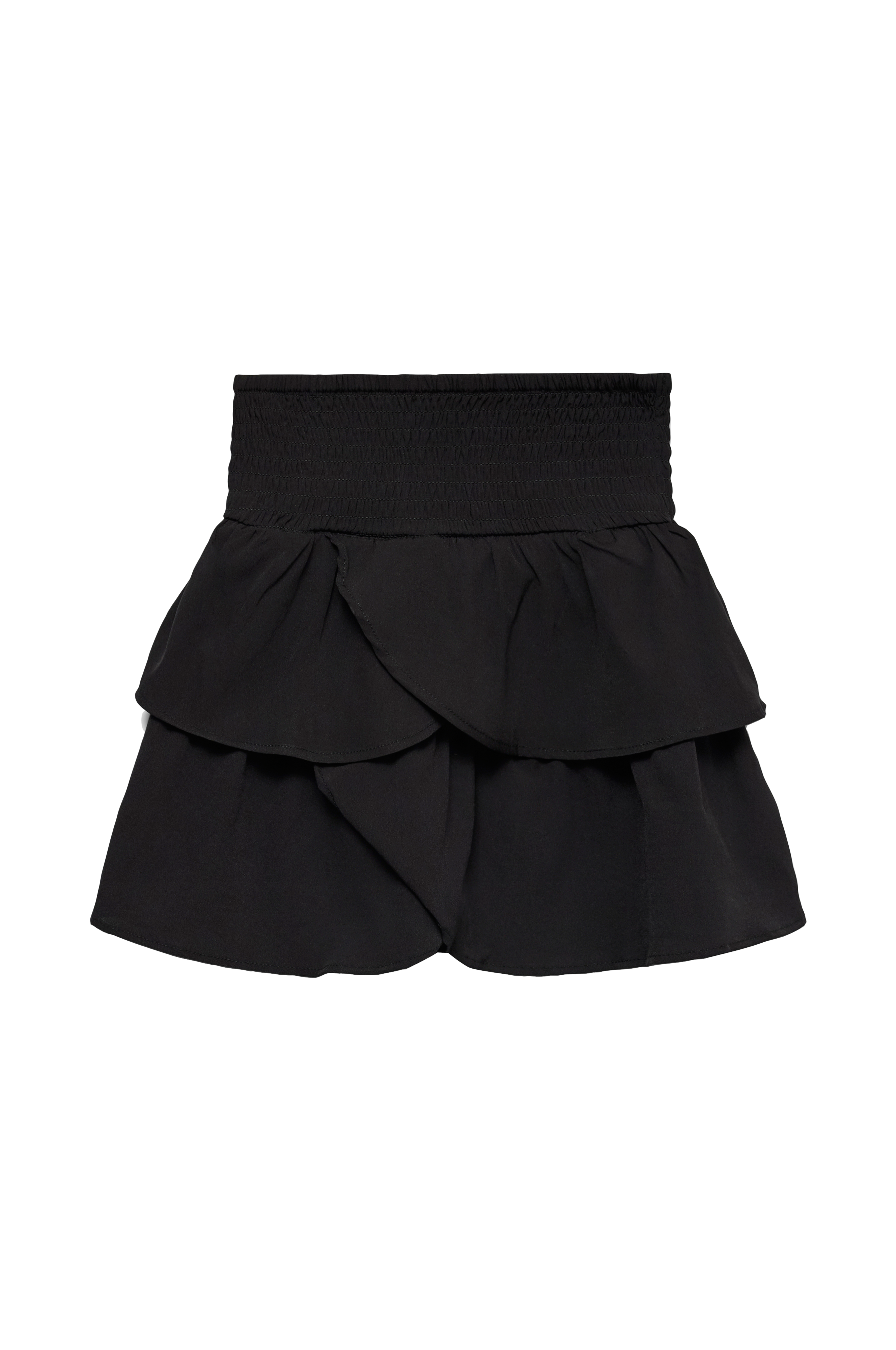 • Volantnederdel med tre lag• Bred, smocket talje