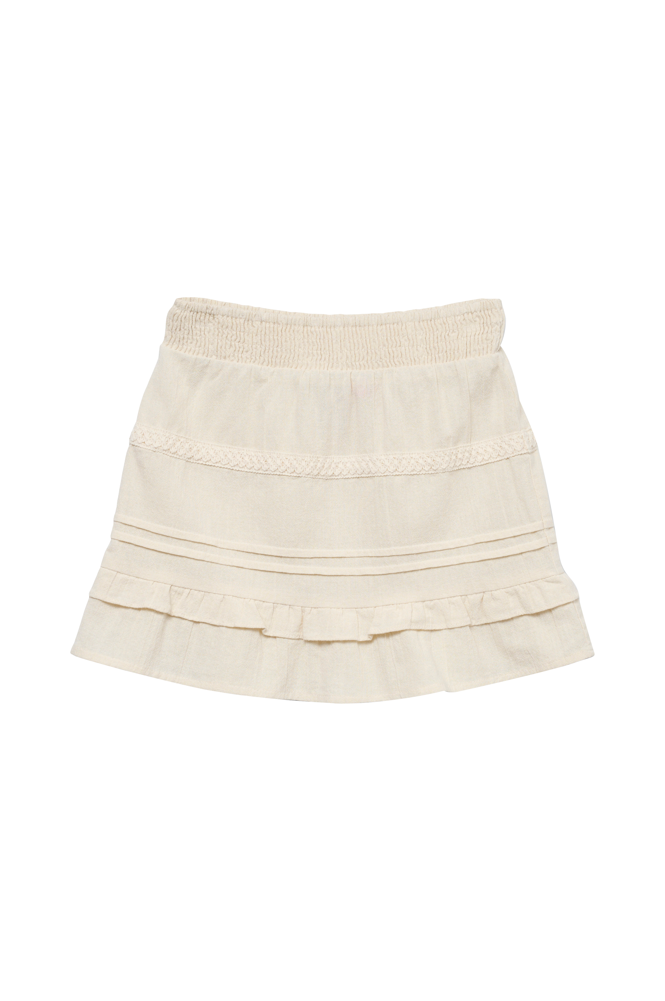 • Nederdel med volant og bølgeformede detaljer hele vejen rundt• Påsyet, mønsterstrikket bånd hele vejen rundt• Elastisk talje