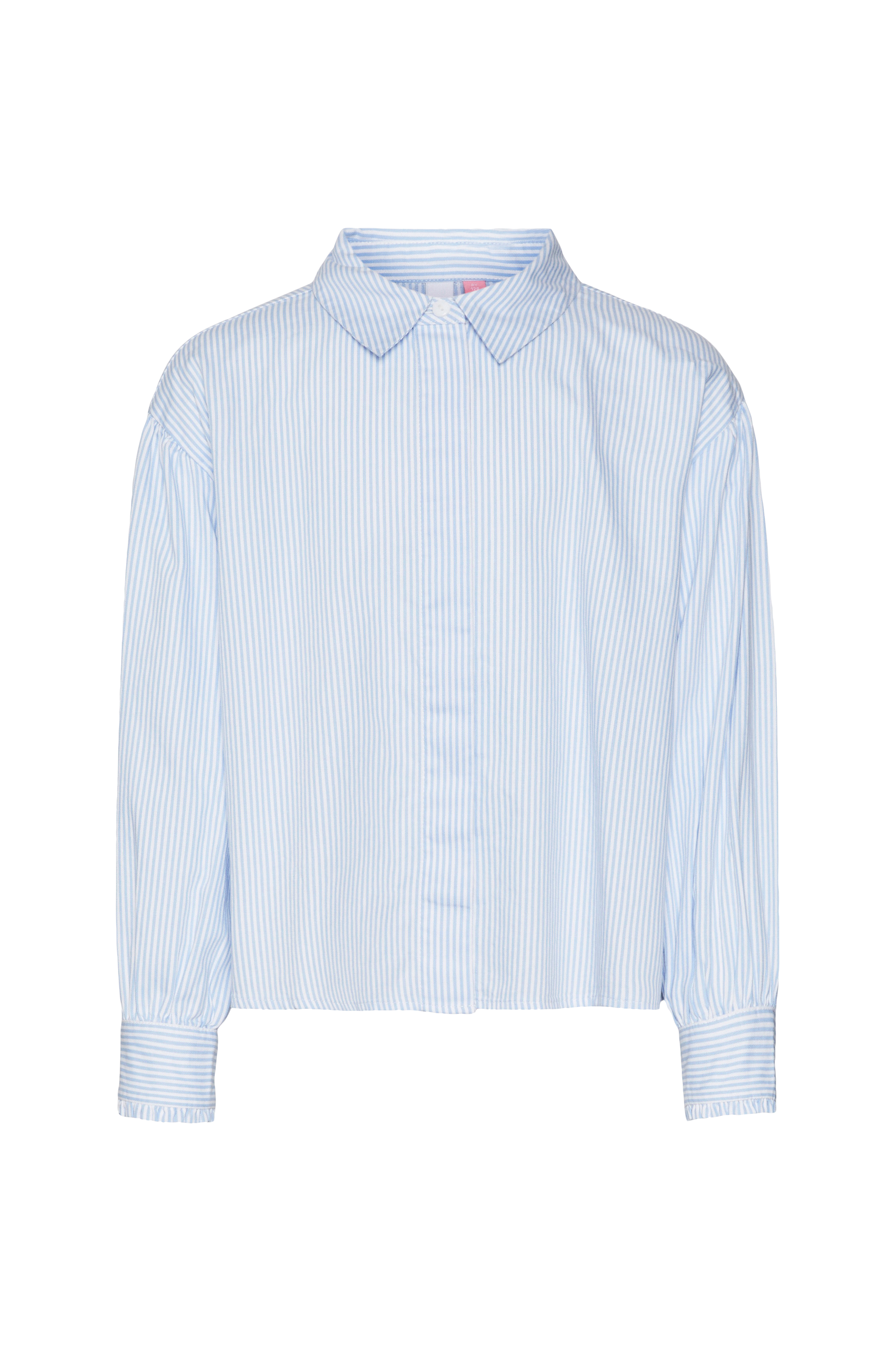 • Skjulte knapper foran• Manchet med volant ved manchetterne• Nedsænkede skuldre med samling