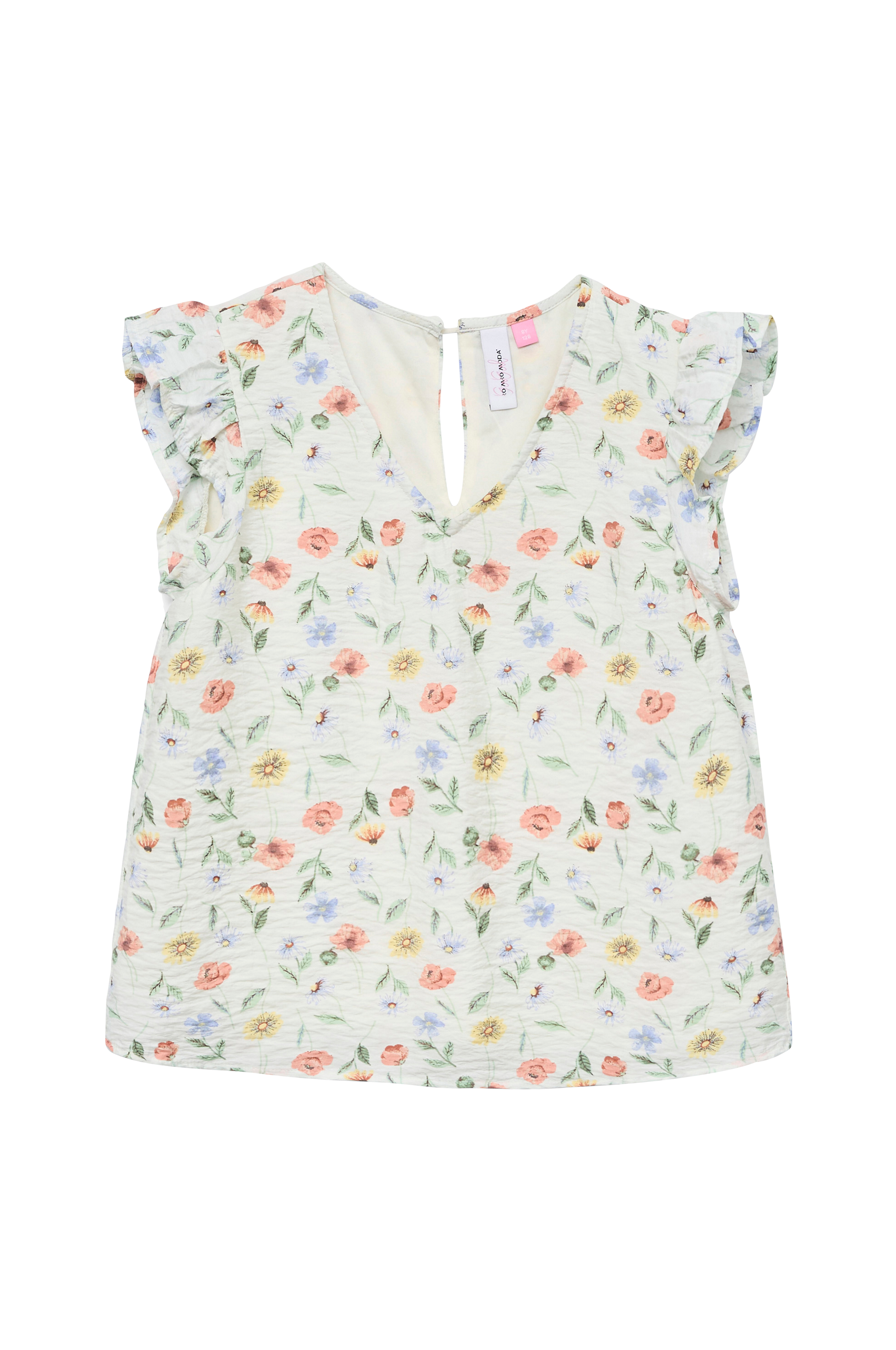• Top i viskoseblanding med let struktur• Printet blomstermønster• V-hals• Nøglehulsåbning oppe bagved med knap i nakken• Korte flagrende ærmer
