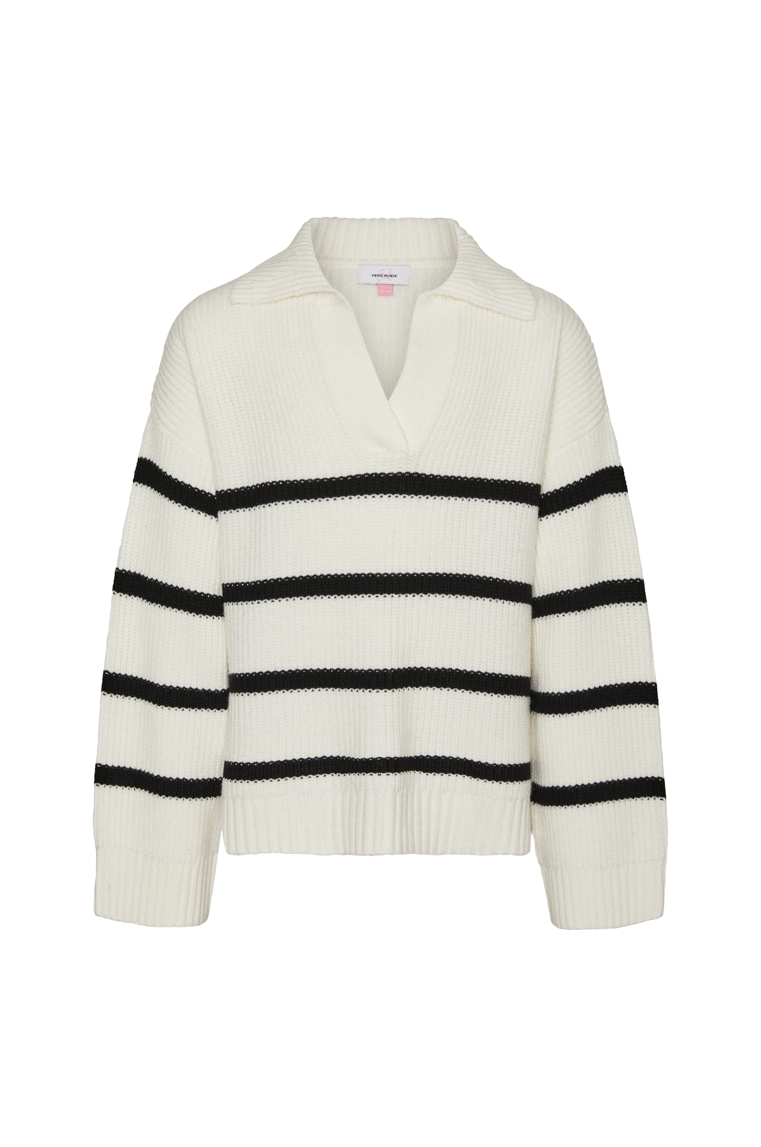 • Ribstrikket model med strikkede striber• Krave med ventilation foran• Nedsænket skulder med langt ærme• Kort slids nede i siderne