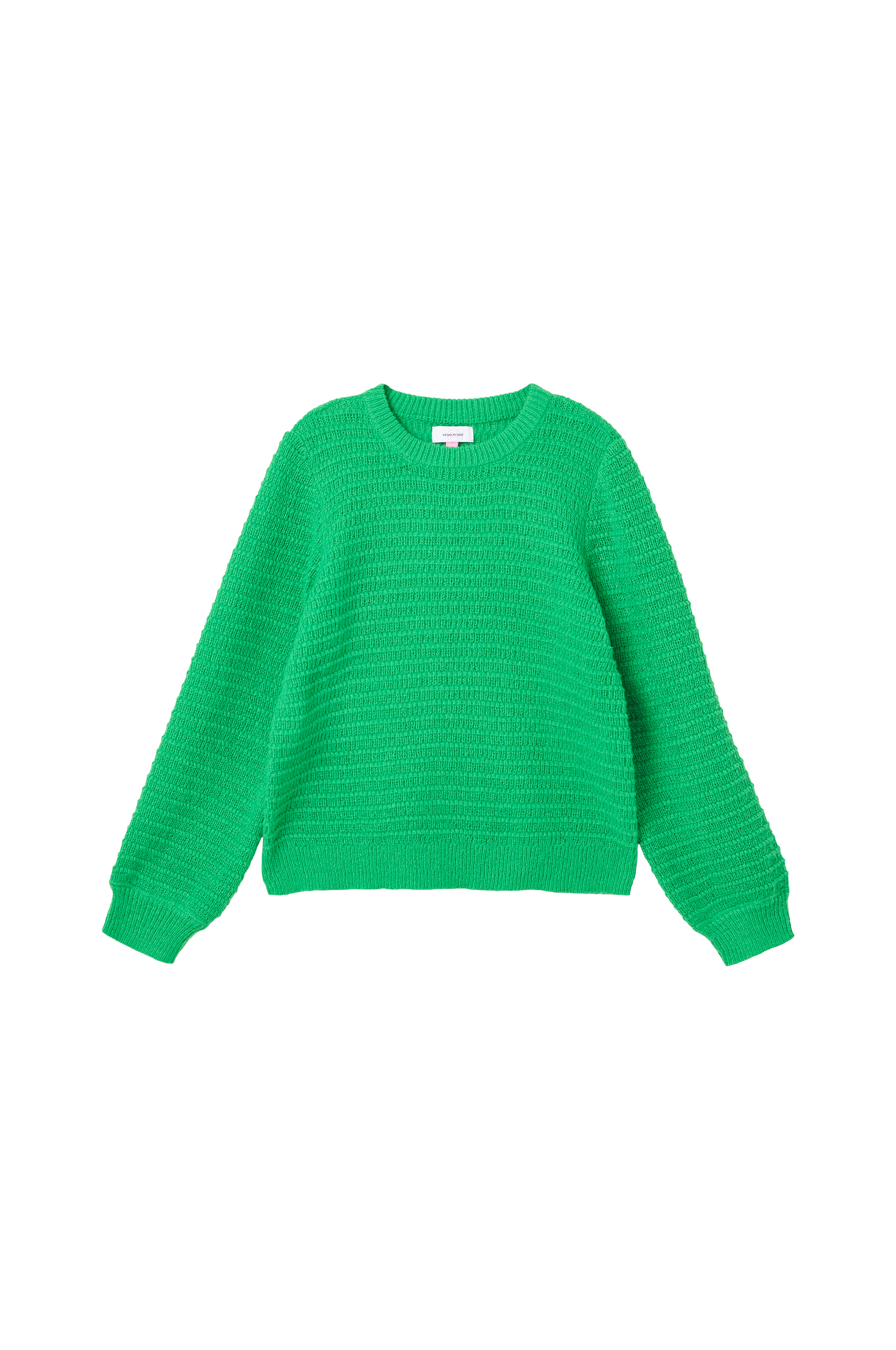 Strukturstrikket trøje med løs pasform og noget videre ærmer med rib i ærmekanterne.