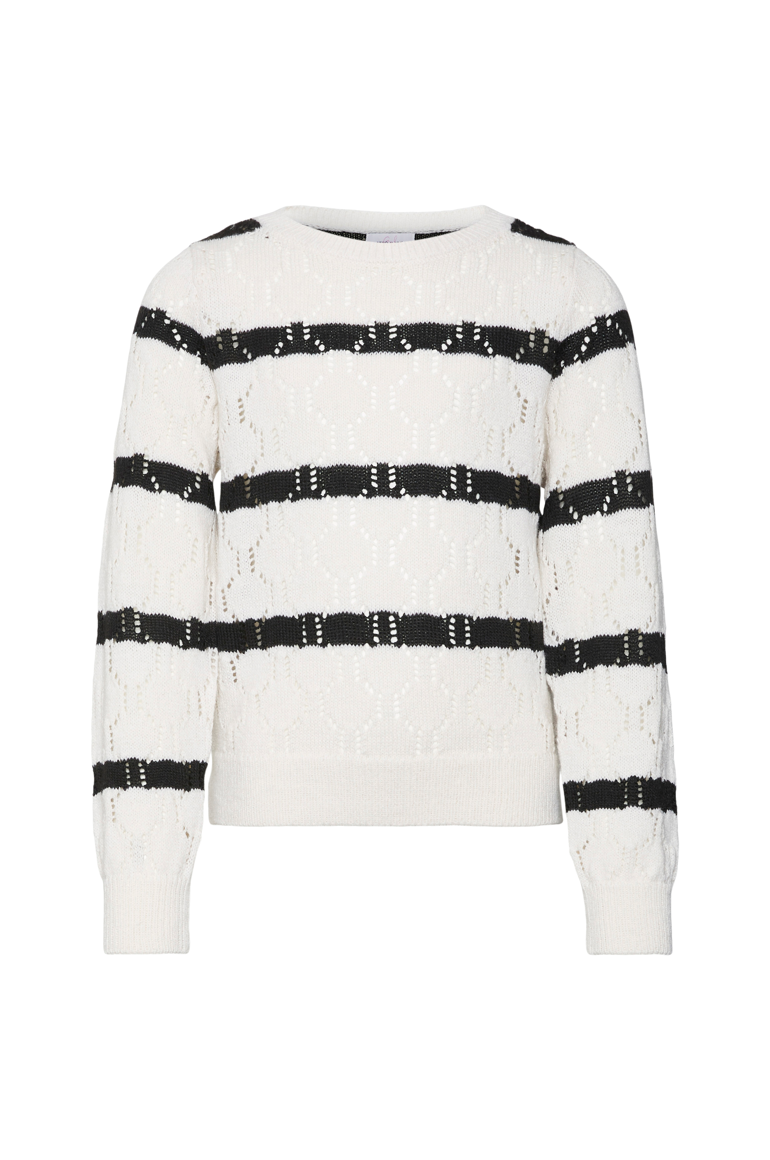 • Blød, mønsterstrikket model• Halsudskæring med ribkant• Langt ærme• Ribmanchet ved manchetterne og ved nederste kant