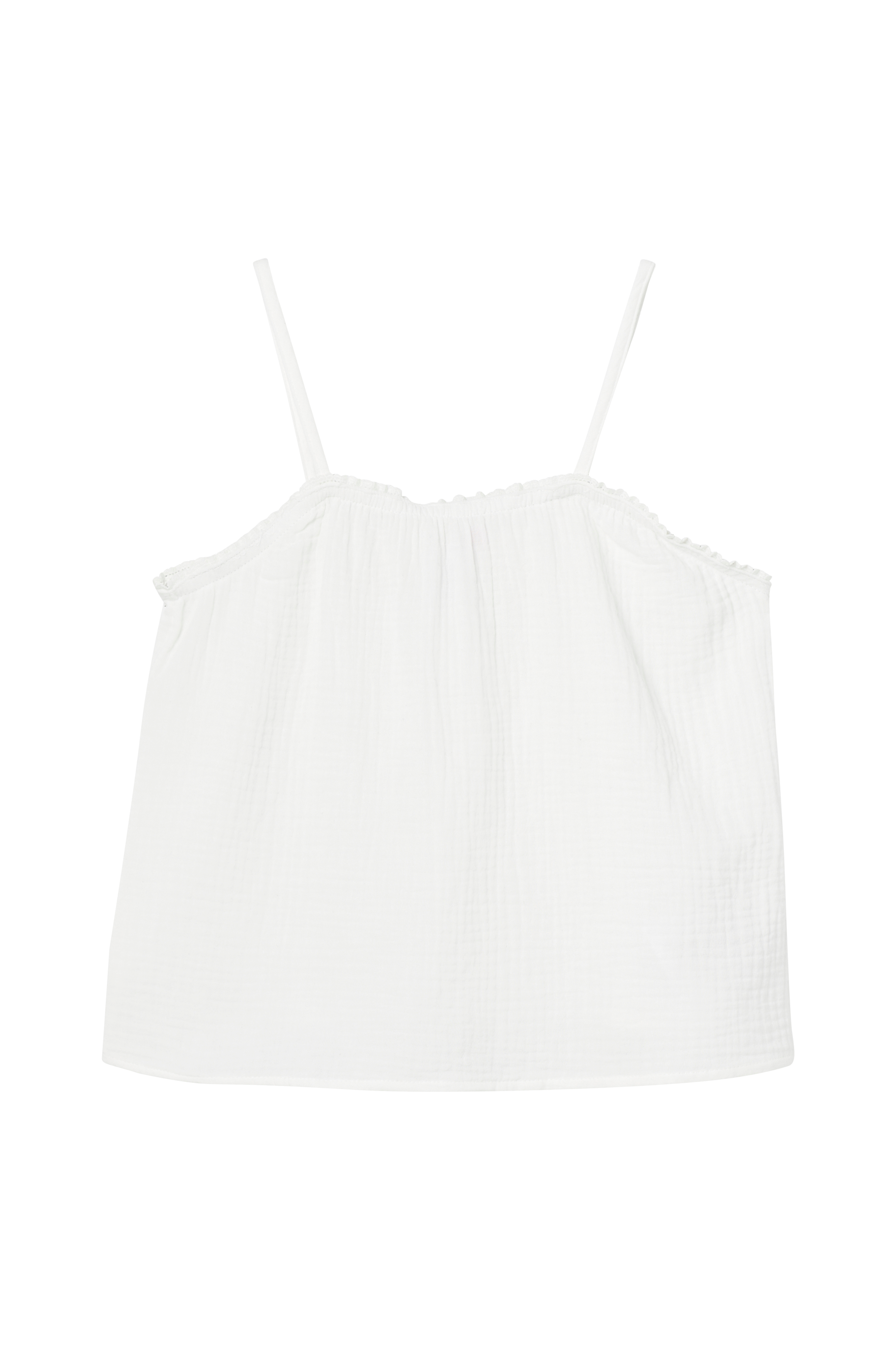 • Dekorativ kant på toppen• Tynde skulderstropper• Behandlet materiale