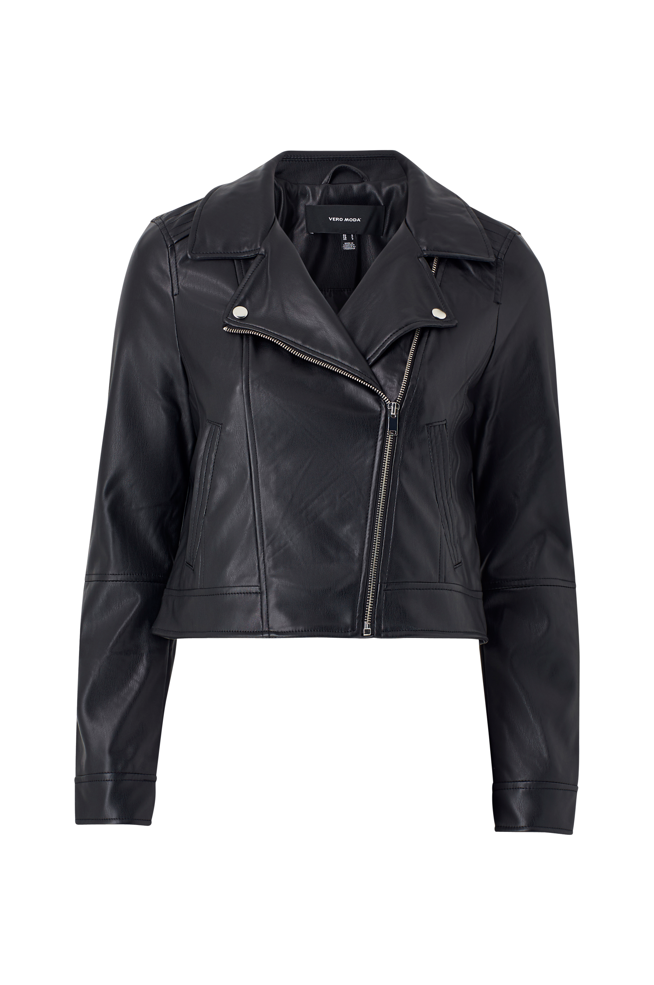 • Jakke i imiteret læder• Asymmetrisk lynlås• To lommer• Vævet for• Længde: 46 cm i størrelse S