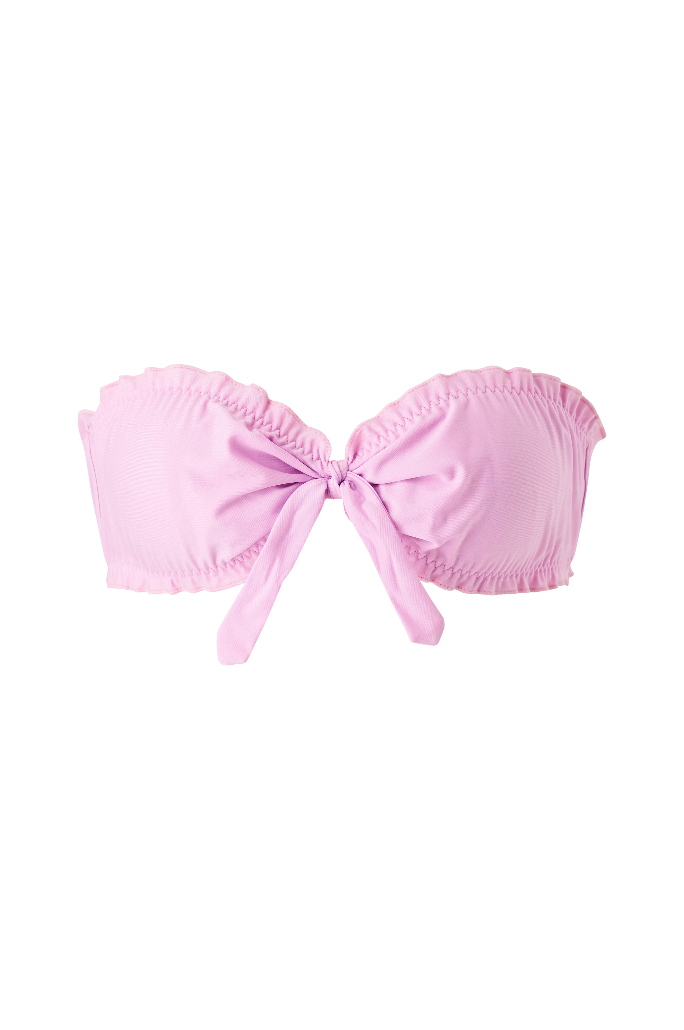 • Stropløs bikinioverdel• Bandeau design• Volant langs kanten• Knudedetalje foran• Indre silikonekant