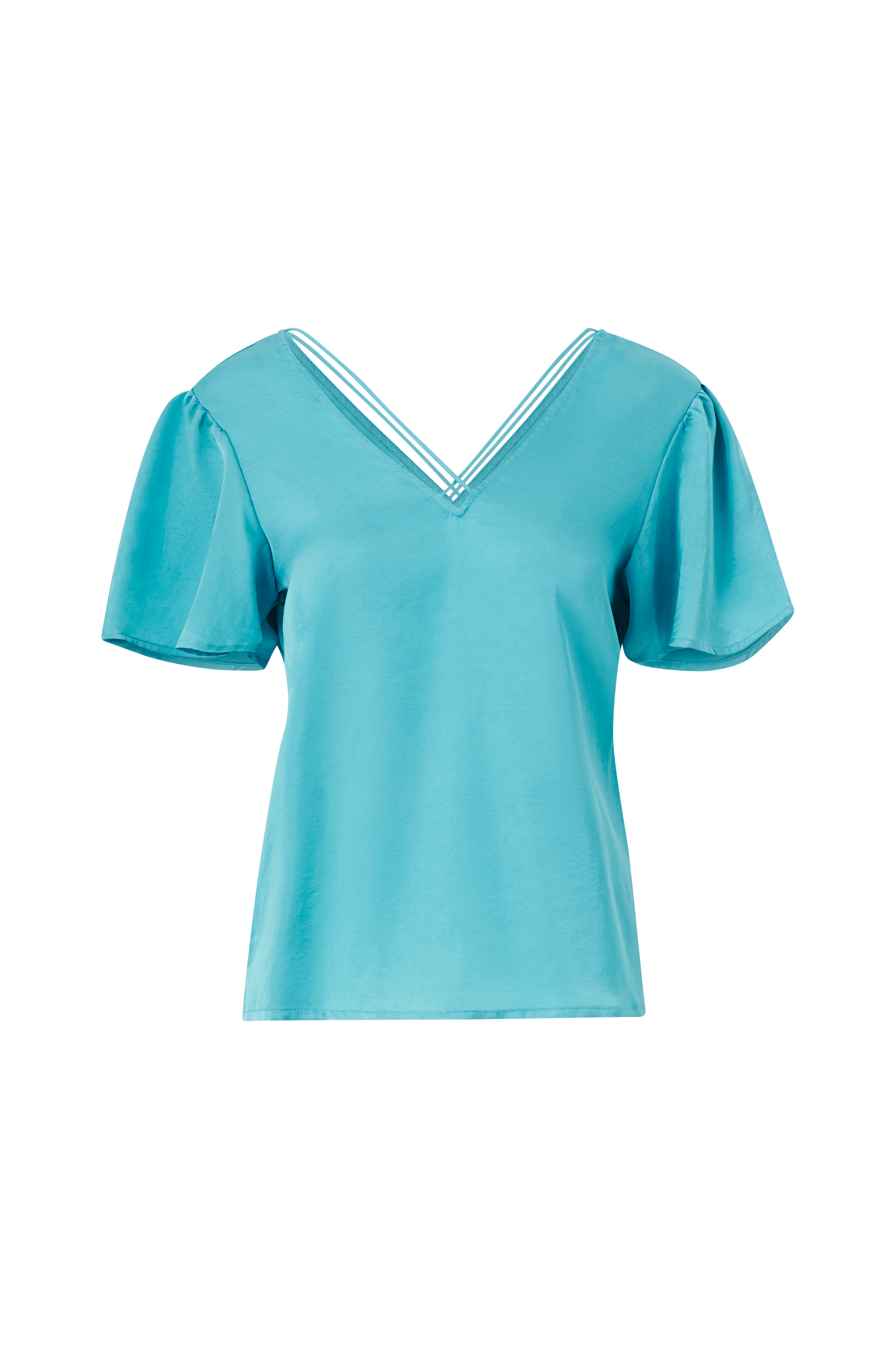 • Vævet, skinnende stof• V-formet halsudskæring• Brede, korte sommerfugleærmer• Produktet indeholder genindvundet materiale, som genbruges for at reducere mængden af affald samtidigt med at der ikke anvendes nye ressourcer.