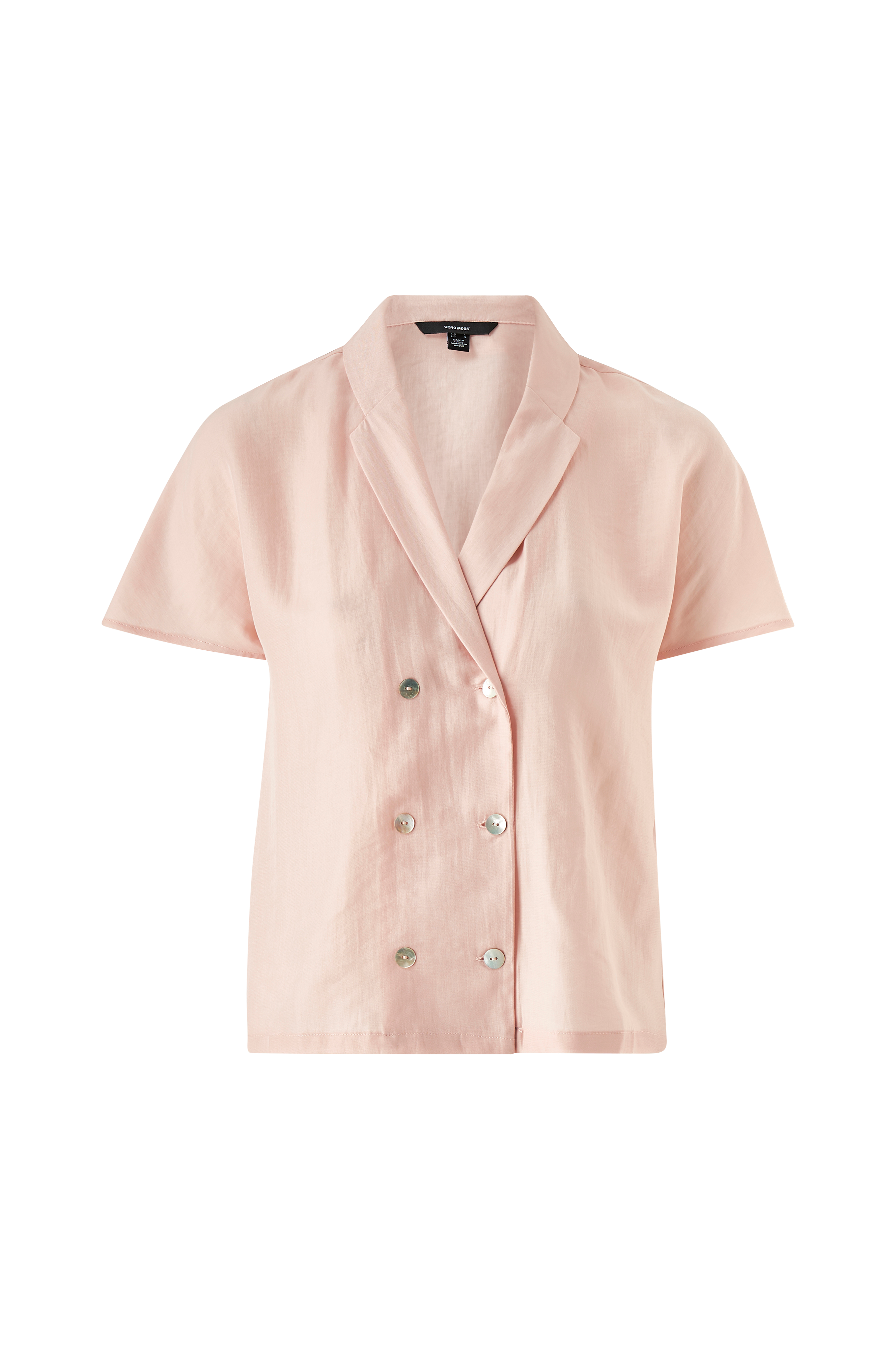 Bluse vmAnya SS Shirt fra Vero Moda. Lige oversizemodel med lav skulder og kort ærme. Krave og revers med dobbeltradet lukning foran.