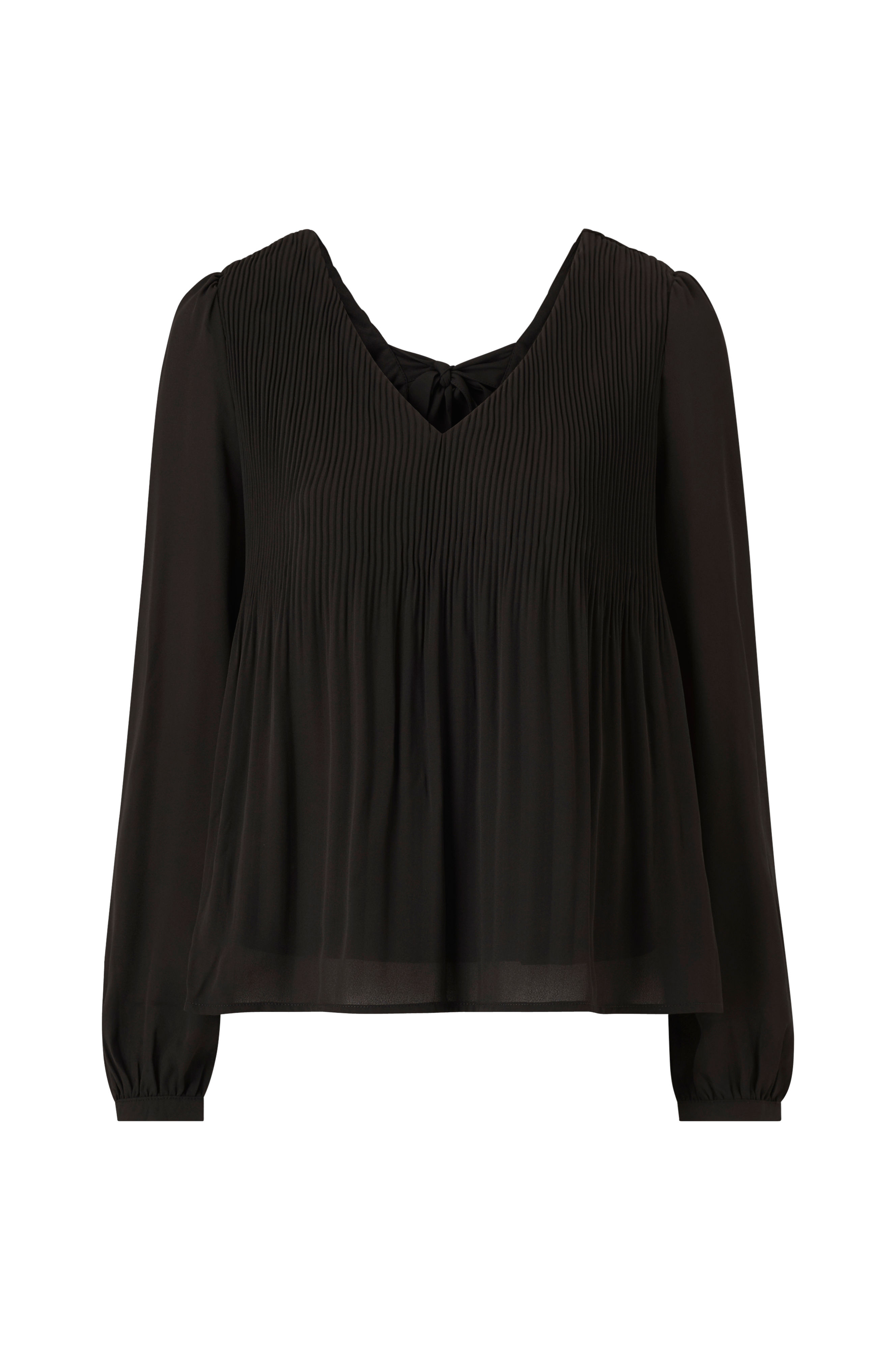 • Plissé på toppen• V-udskæring foran og bagpå• Snøring i nakken• Tynd manchet ved manchetterne• Trikotfor