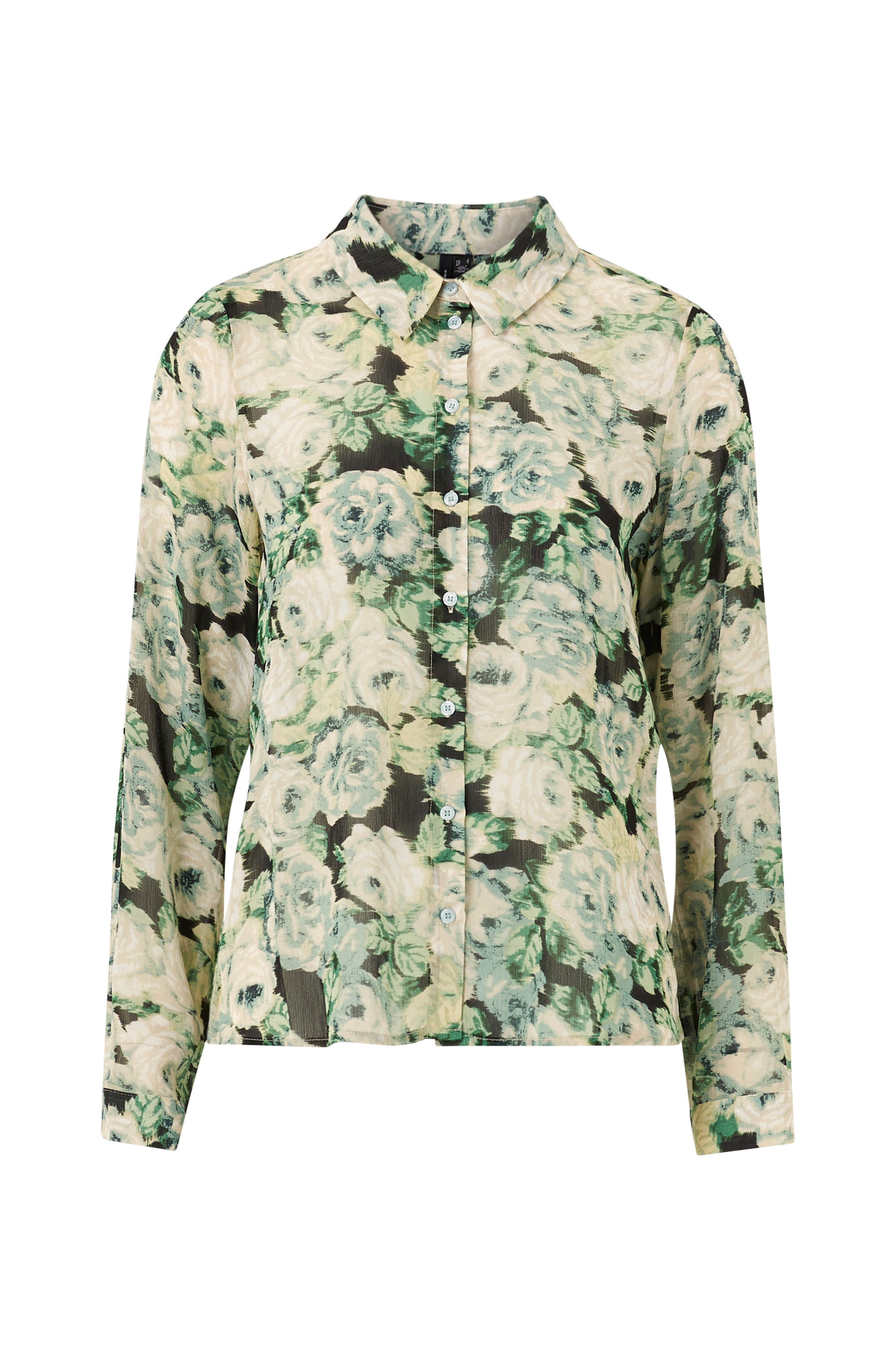 Bluse vmCleo L/S Shirt fra Vero Moda. Lige model med skjortekrave og lukning hele vejen foran samt afskåret skulderbærestykke med lagt læg bagpå. Langt ærme med manchet i ærmekanten. Chiffon af genindvundet polyester.