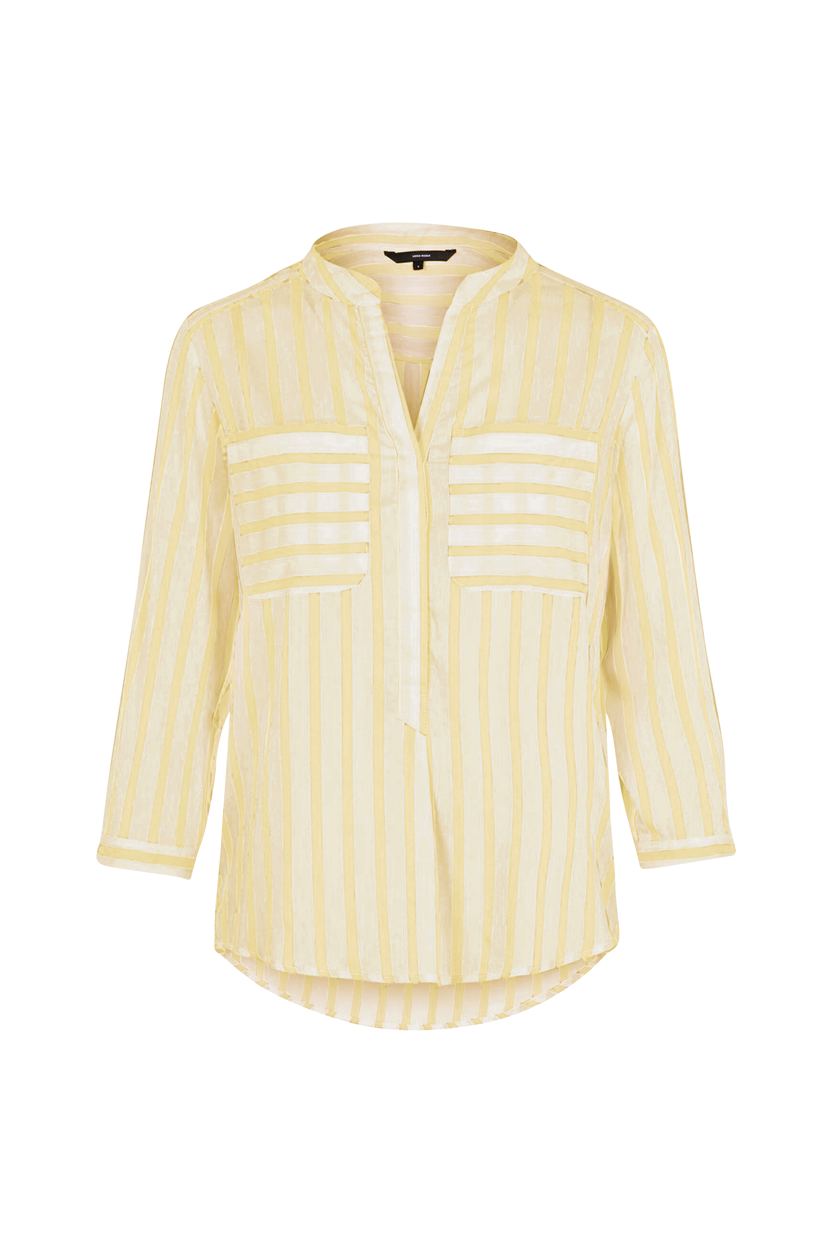 Bluse vmErika Stripe 3/4 Shirt Top Color fra Vero Moda med halvlang, skjult stolpelukning som ikke går hele vejen op. To brystlommer og 3/4-langt ærme med smal manchet. Afrundet kant forneden som er lidt længere bagpå.