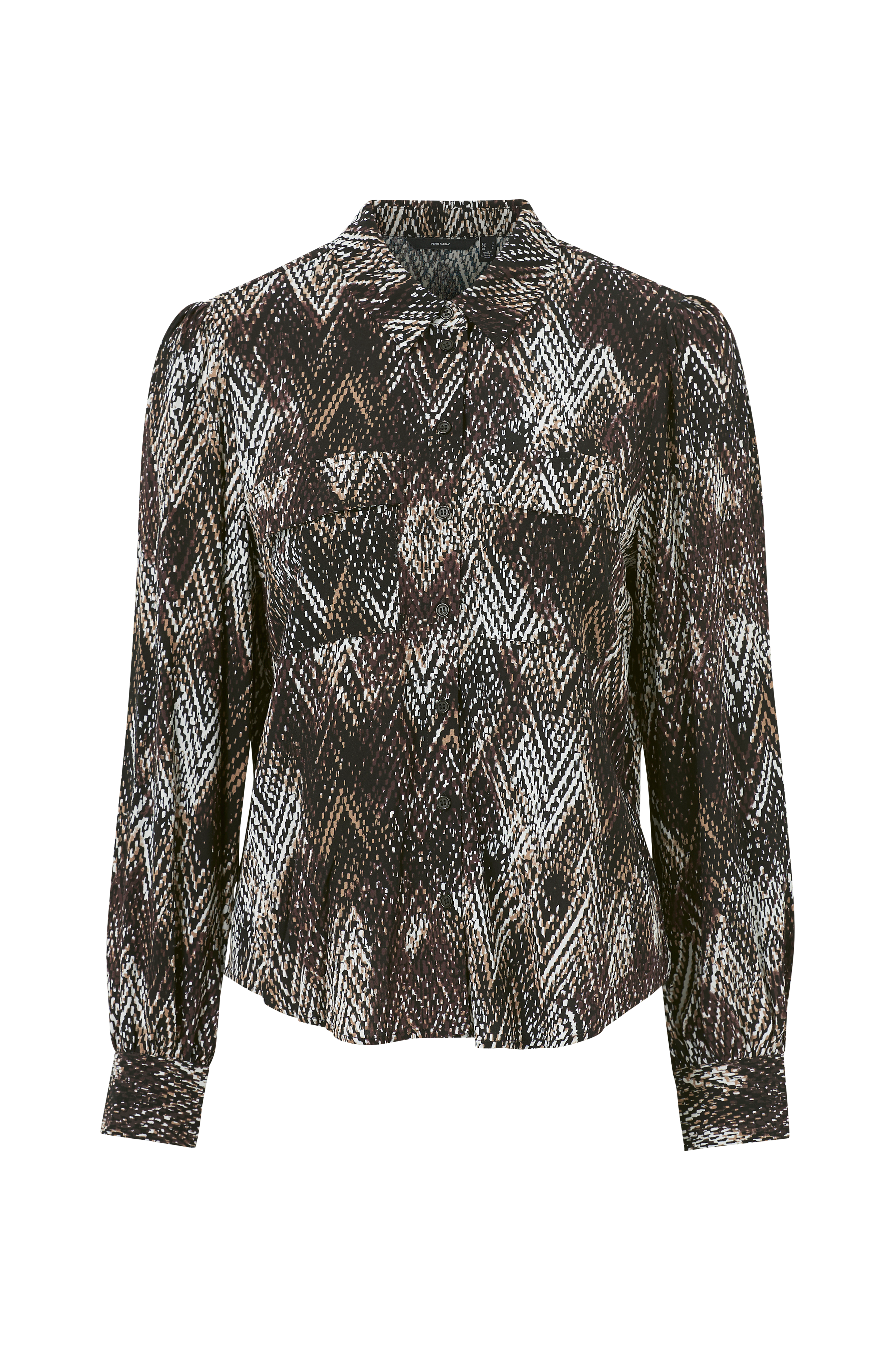 Bluse vmEsther LS Shirt fra Vero Moda. Lige model med lille krave og lukning hele vejen foran. To store brystlommer med klap og langt ærme med manchet i ærmekant.