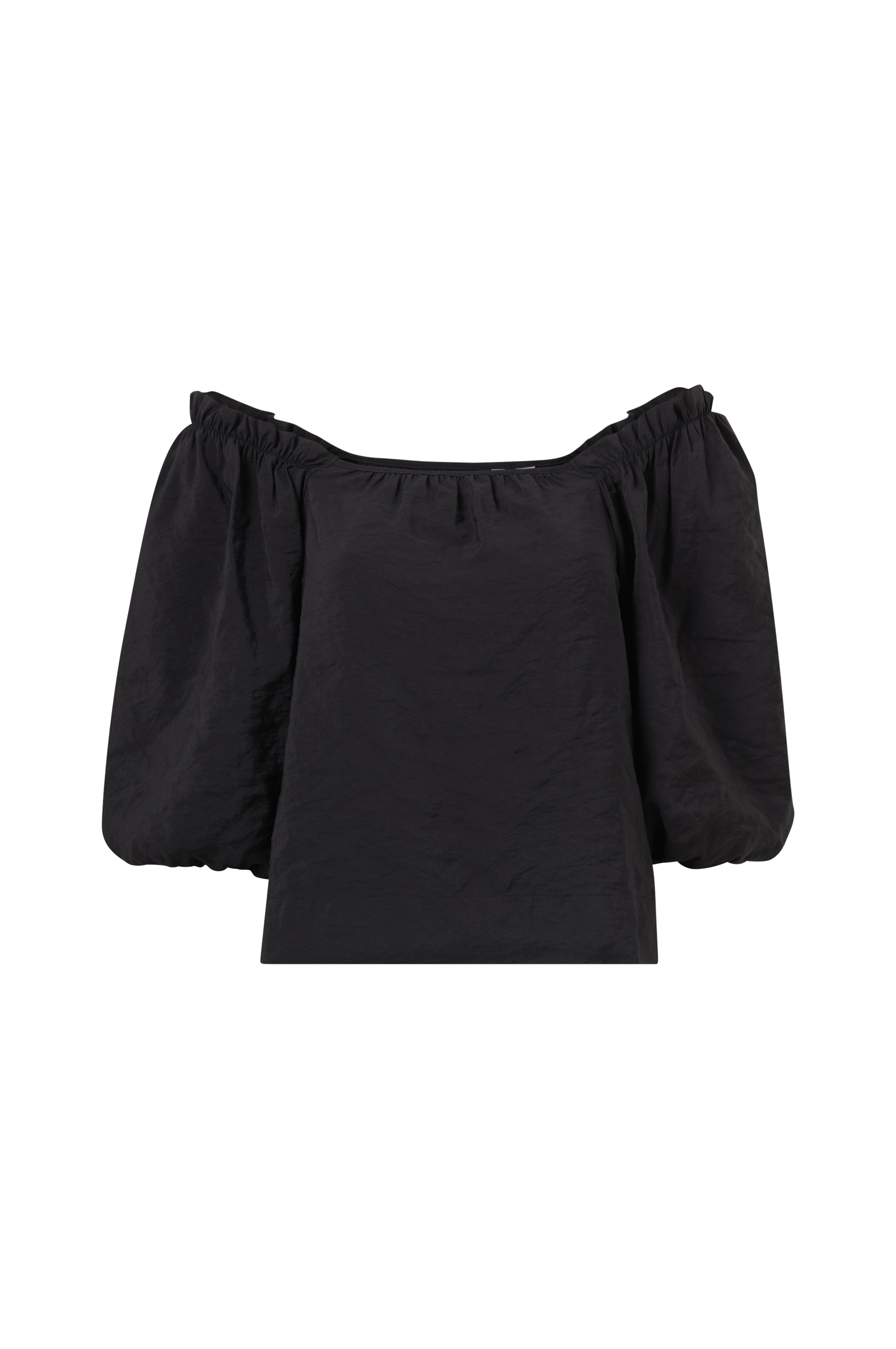 • Firkantet halsudskæring • Volanter på skuldrene • Halvlange, voluminøse ballonærmer • Produktet indeholder TENCEL™, som er et vedvarende materiale, og hvor fremstillingsprocessen sker i et lukket system, hvor alle ressourcer genanvendes og genbruges. TENCEL™ fremstilles af træsorter fra mere bæredygtige skovplantager. Det har lavere miljøpåvirkning og kræver mindre vand end bomuld.