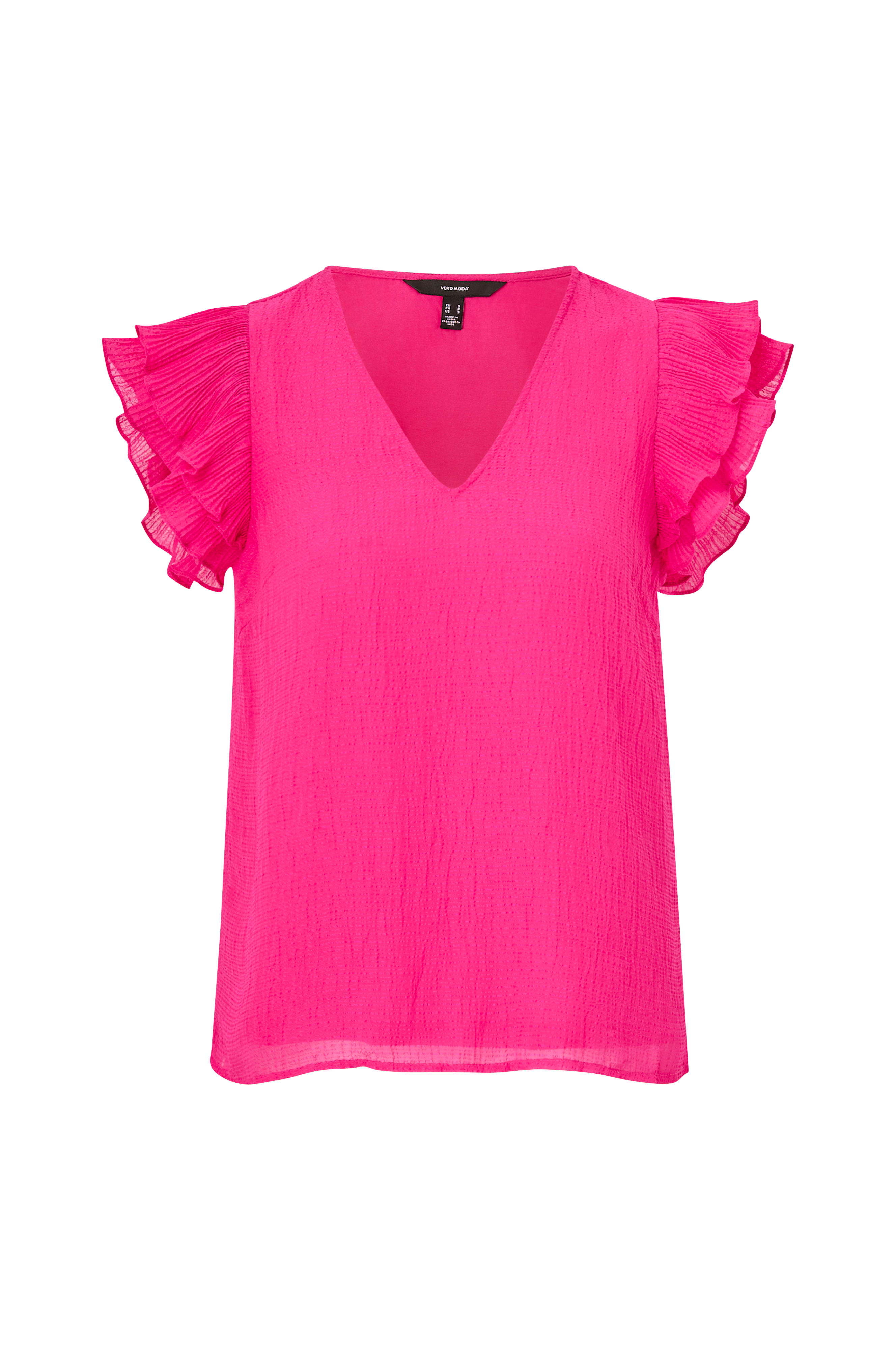 • V-udskæring• Korte flagrende ærmer• Fremstillet af mønstervævet chiffon• Trikotfor