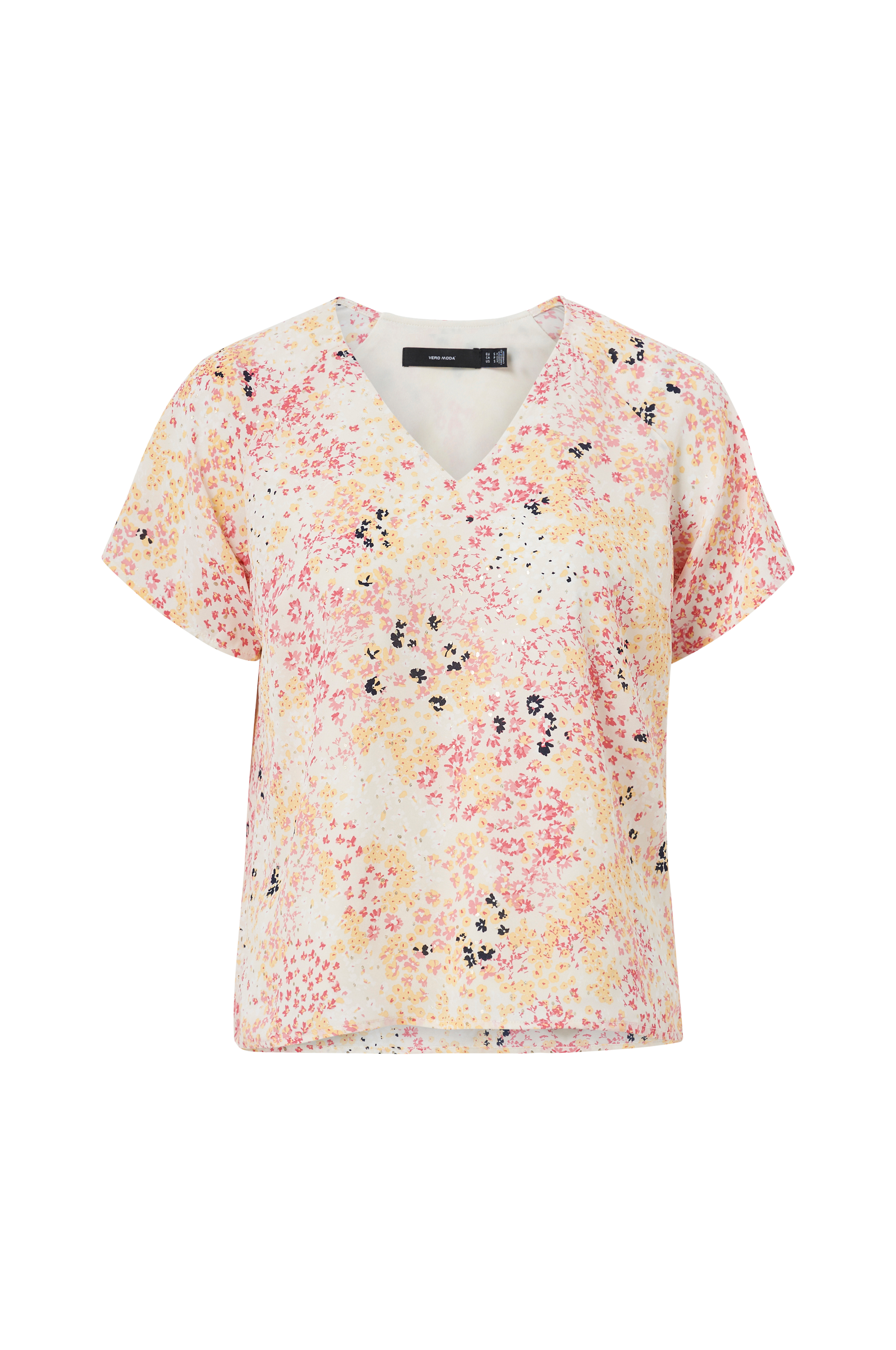 Bluse med V-udskæring foran og korte raglanærmer. I tynd, vævet kvalitet. For i jersey.