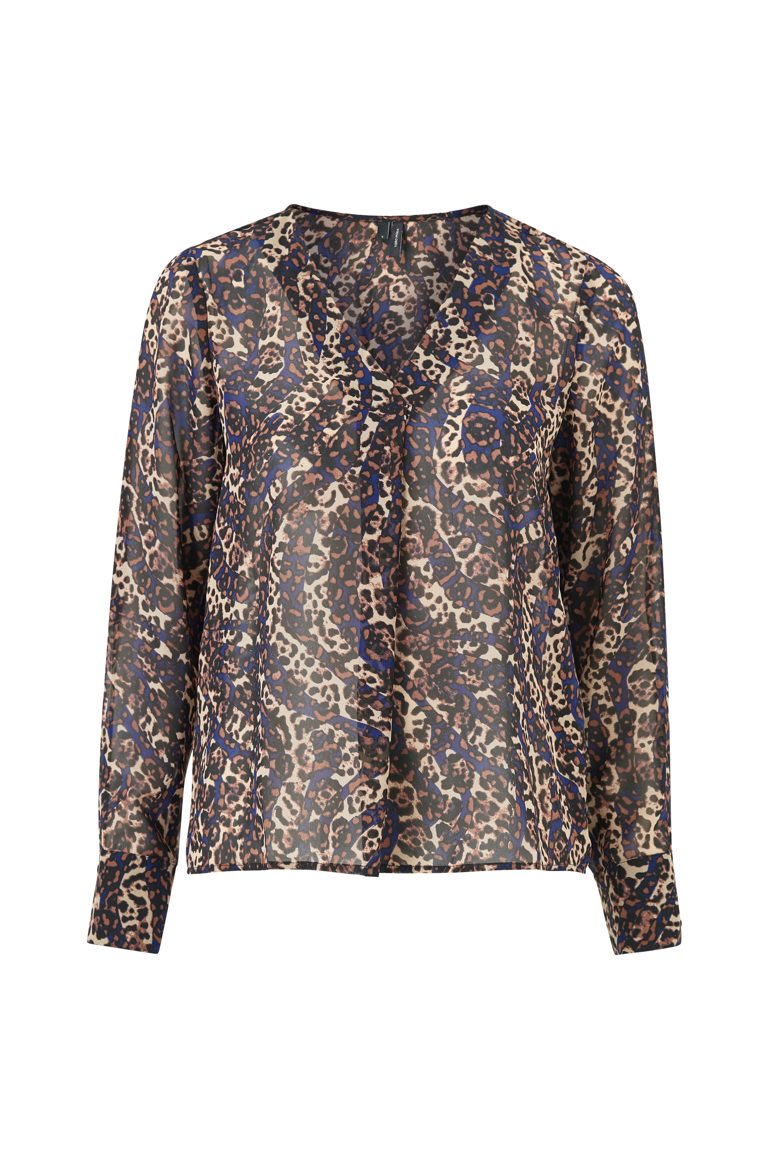 Bluse vmIstanbull L/S V-neck Top fra Vero Moda. Lige model med V-udskæring som har et stort, lagt læg nedenunder. Langt ærme med bred manchet i ærmekanten og lige afskåret kant forneden. Vævet chiffon med printet mønster.