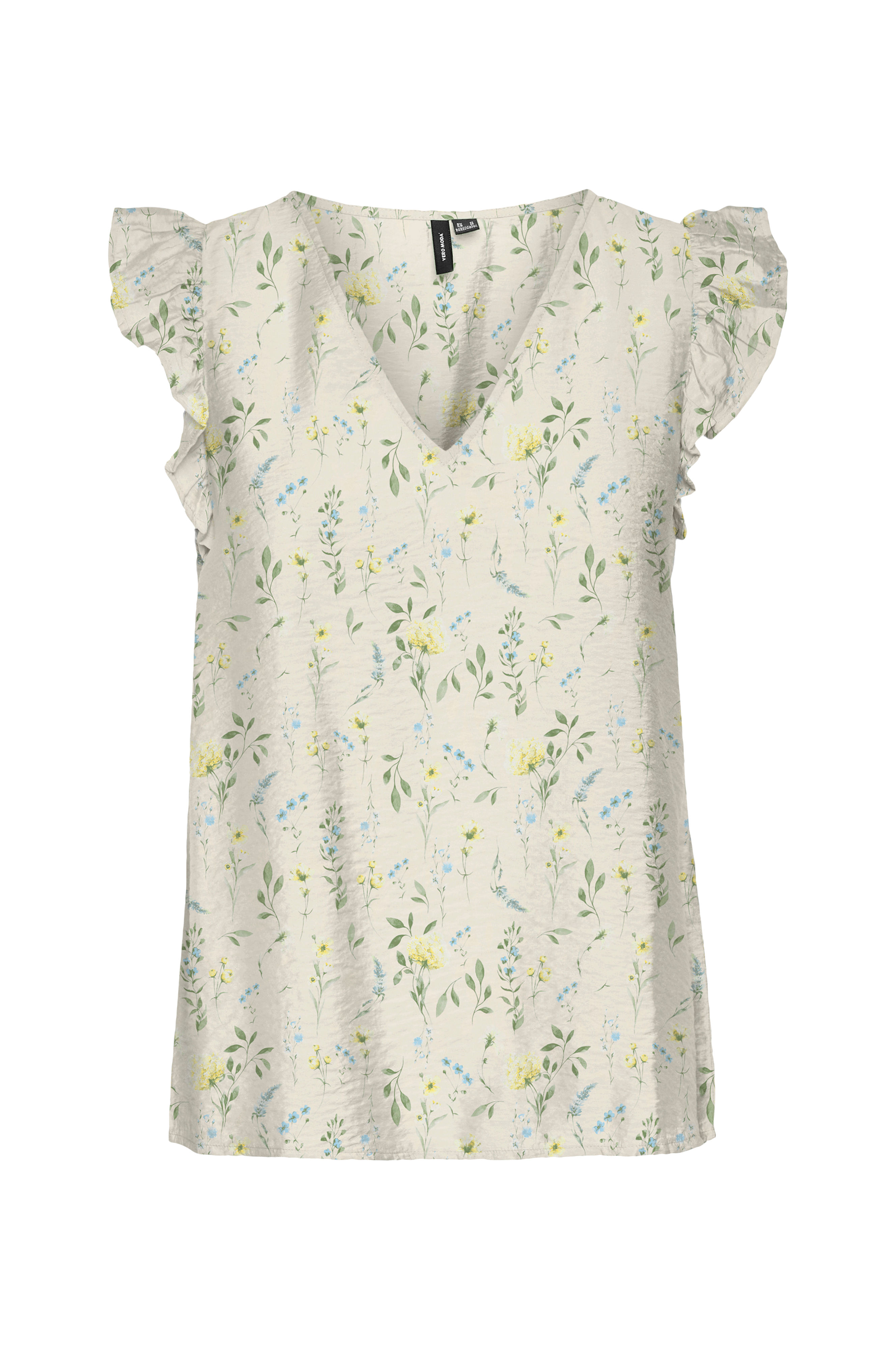 • V-udskæring• Volanter på hver skulder• Materiale med struktur