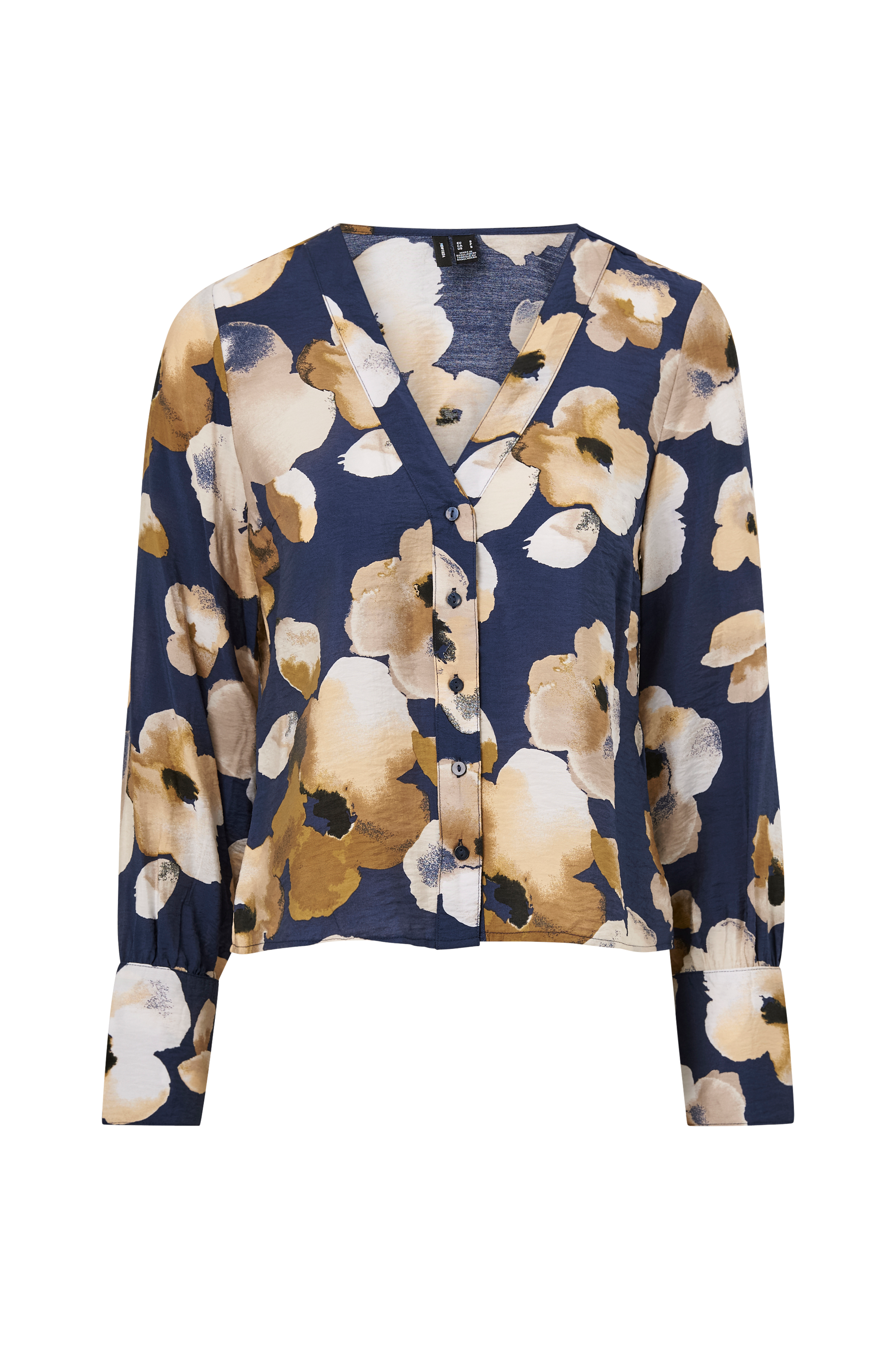 • Let formet model• V-formet halsudskæring• Knapper foran• Langt ærme med bred manchet