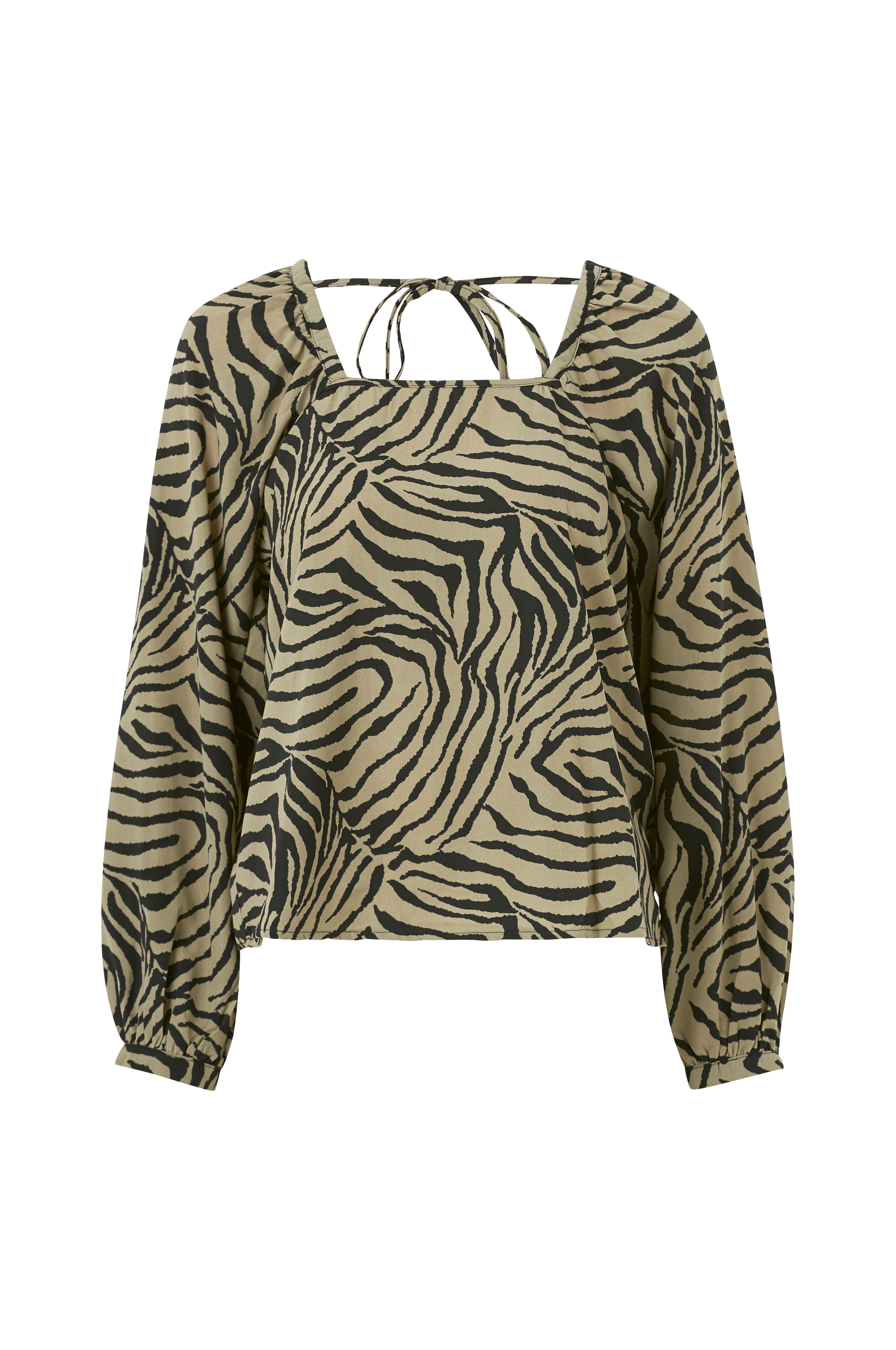 Bluse vmLisa Graffic LS Shirt fra Vero Moda. Lige model med vidt raglanærme som har rynkning på skulderen og smal, påsyet kant i ærmekant. Kantet halsudskæring med smalt bindebånd i nakken og bred indsat elastik på ryggen.